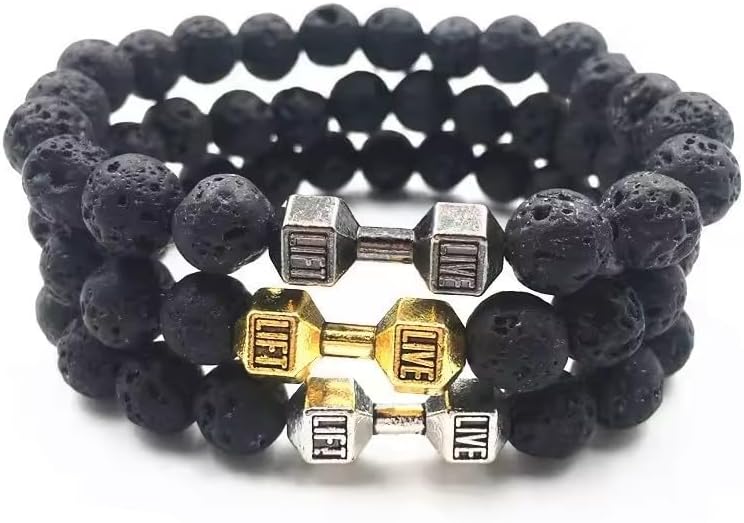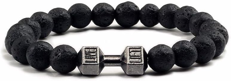 1PC Volcanic Stone Bracelet Men Charm Dumbbell Strand Gym Bracelets Women Barbell Fitness Jewelry Accessory