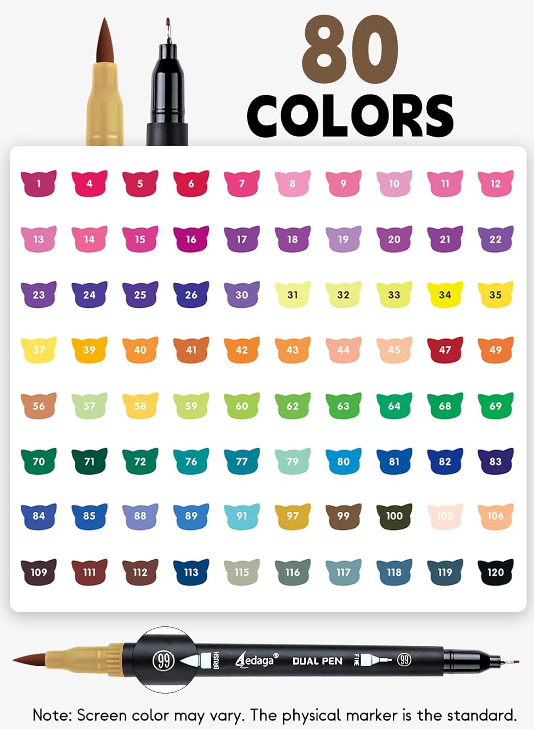 COLOR CODEED PENS WITH APP, FIND COLORS FAST: Our dual tip brush pens come with numerical encoding, and the pens you receive are arranged in numerical order. We offer an App that recognizes colors and recommends matching color codes. Easily find the pen you need with the color code on the pen body. The APP also provides many features to enhance your artistic experience