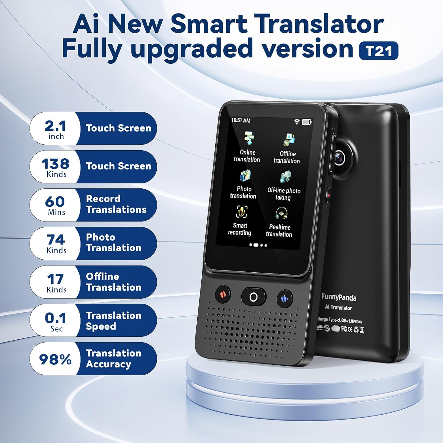 ai language translator device t21 138 languages instant translator Wi-Fi available, voice translator device two way translator device no wifi needed