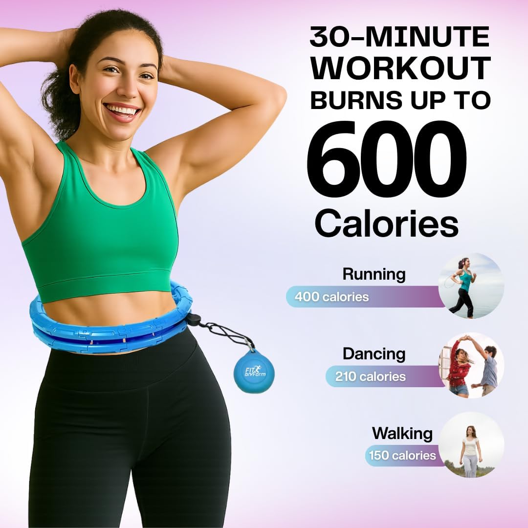 With the focus on premium quality and safety, our weighted hoola hoop have been finished to the highest standard and smoothness and is made of hard ABS plastic and soft silicone ball fully enclosed with iron sand materials to avoid leaking. Whether you want to lose weight or belly fat, the silicone gravity ball has enough weight to burn up to 800 calories using our exercise hoop for 30 minutes. Our fitness infinity hoop Consists of 24 detachable Knots which can be adjusted easily according to your waistline, suitable for waist size up to 47 inches.