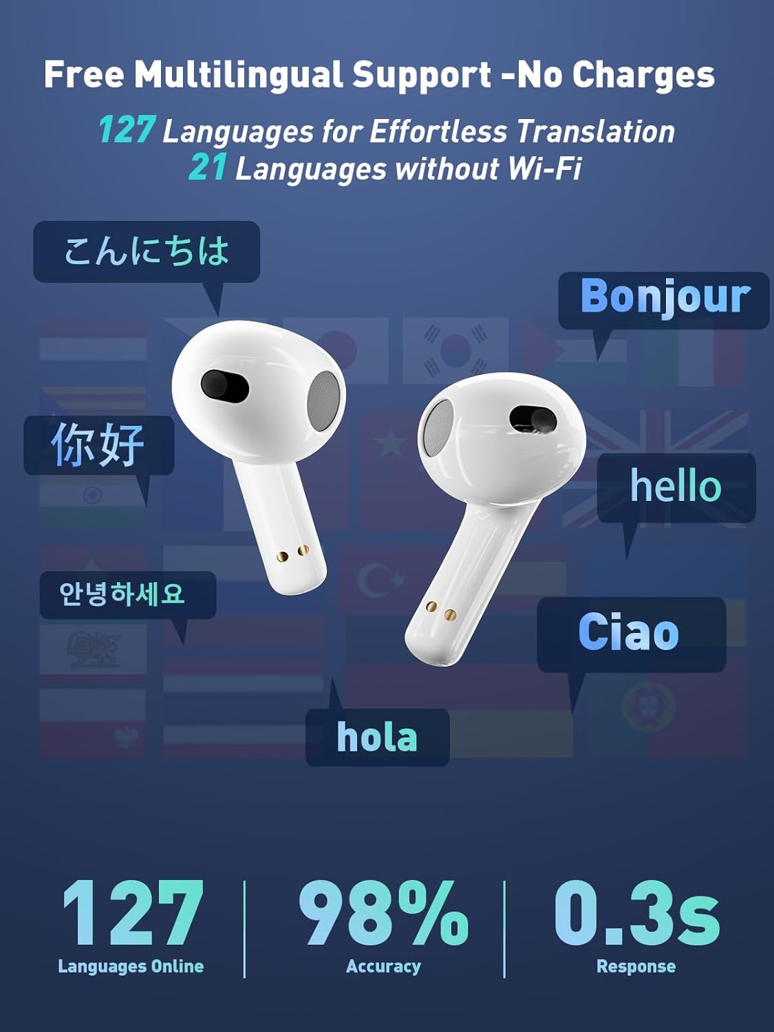 Trust our 22 pro Translate Earbuds to elevate every conversation in 127 languages with a verified 98% accuracy rate.