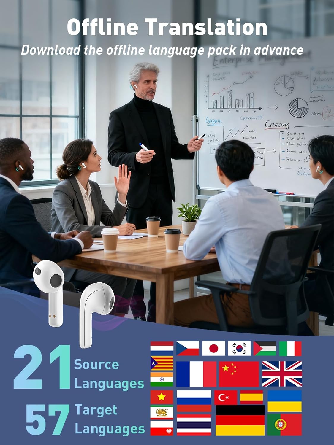 These 22 pro translation earbuds support 21 source and 57 target languages in offline mode—no Wi-Fi, no subscription needed