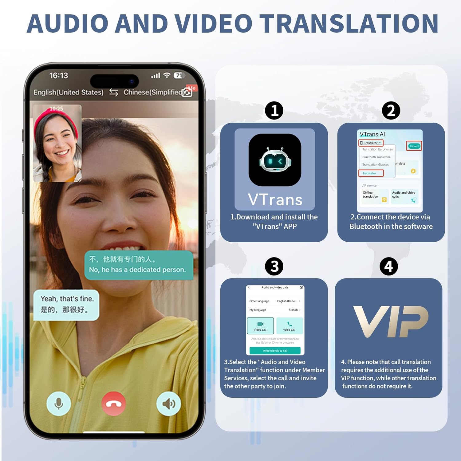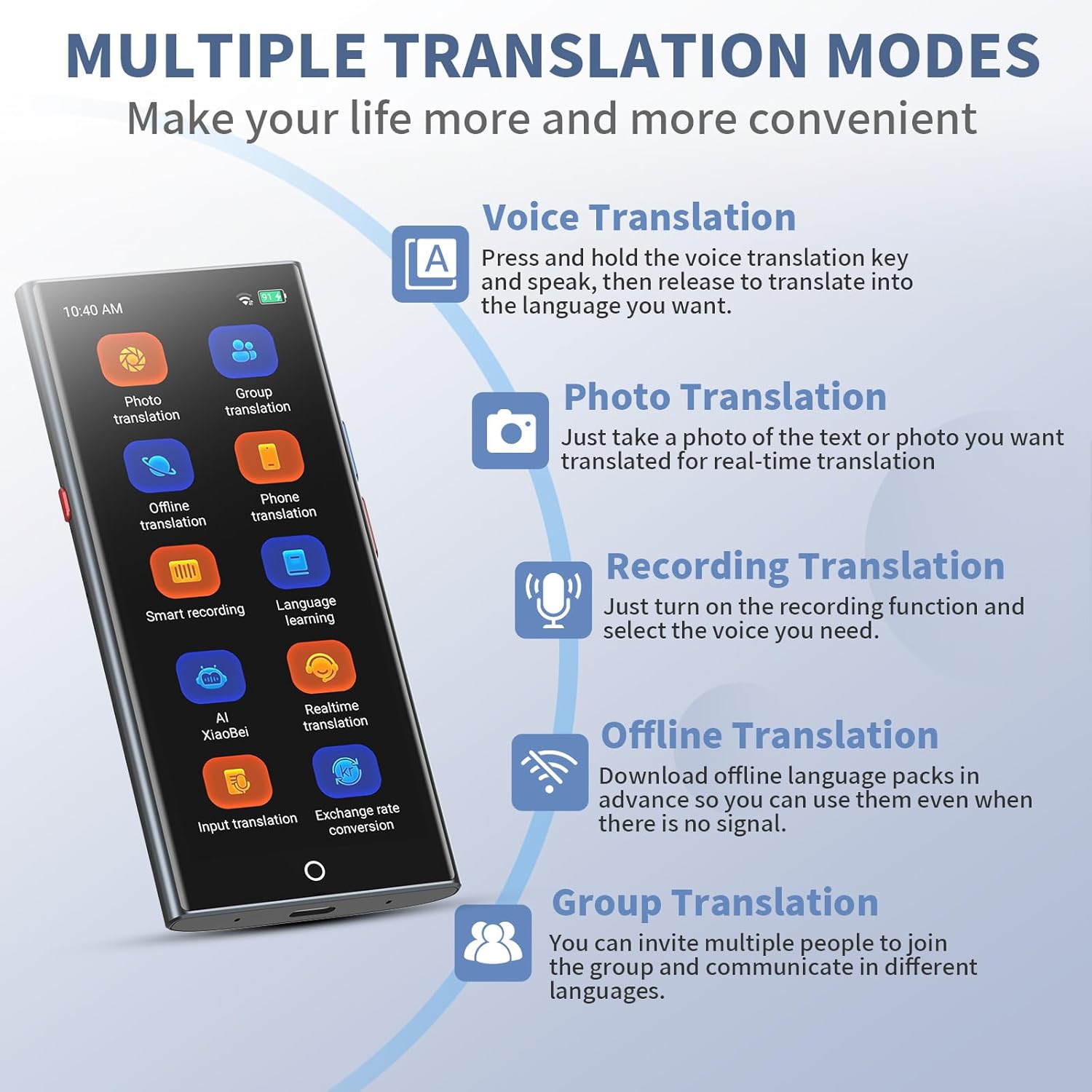 【Language Translator Real-Time for Business】Language translator updated the chip, our translator device is more stable and faster. Are you worried about lagging translations during a meeting? Our real-time translations quickly translate into your language based on the speed at which you speak. Recording translation can also save the meeting content and convert it into text.