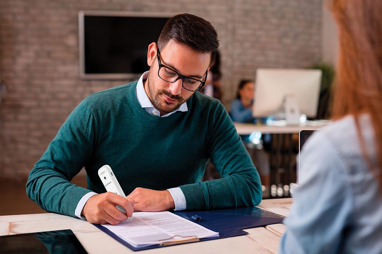 Scan! The device will translate in the language of your choice on the screen or with the speaker!