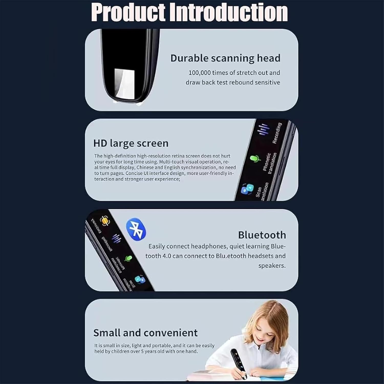 Smart Scanning & Reading Function: Equipped with high-precision optical scanning technology, the pen instantly translates printed or handwritten text from books, documents, signs, or menus, enhancing reading and scanning capabilities.