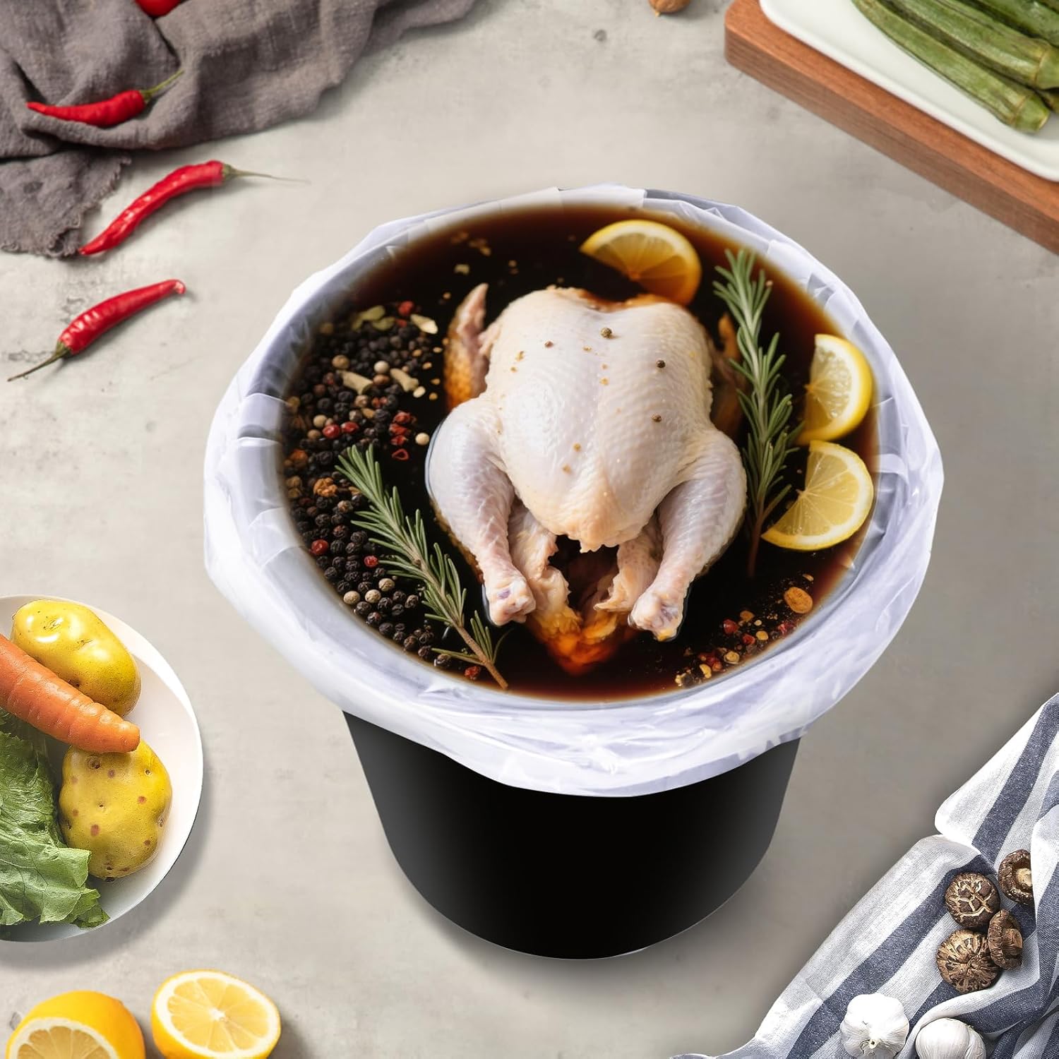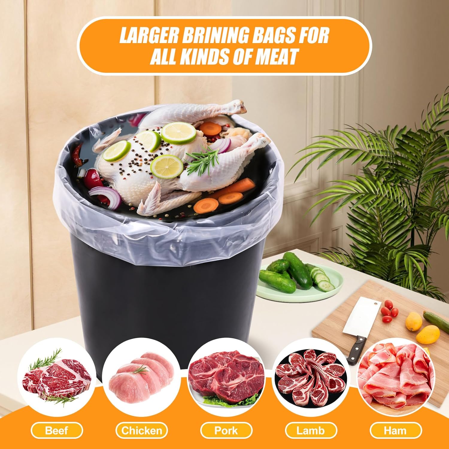 Versatile Usage: While our bucket liner bags are ideal for brining turkeys, they can also used in keeping your meats, vegetables, fruits freshly and can be applied for clothes, linens . Whether you need to marinate large cuts of meat, store bulk ingredients, or even carry out DIY projects, these bags are versatile and reliable.