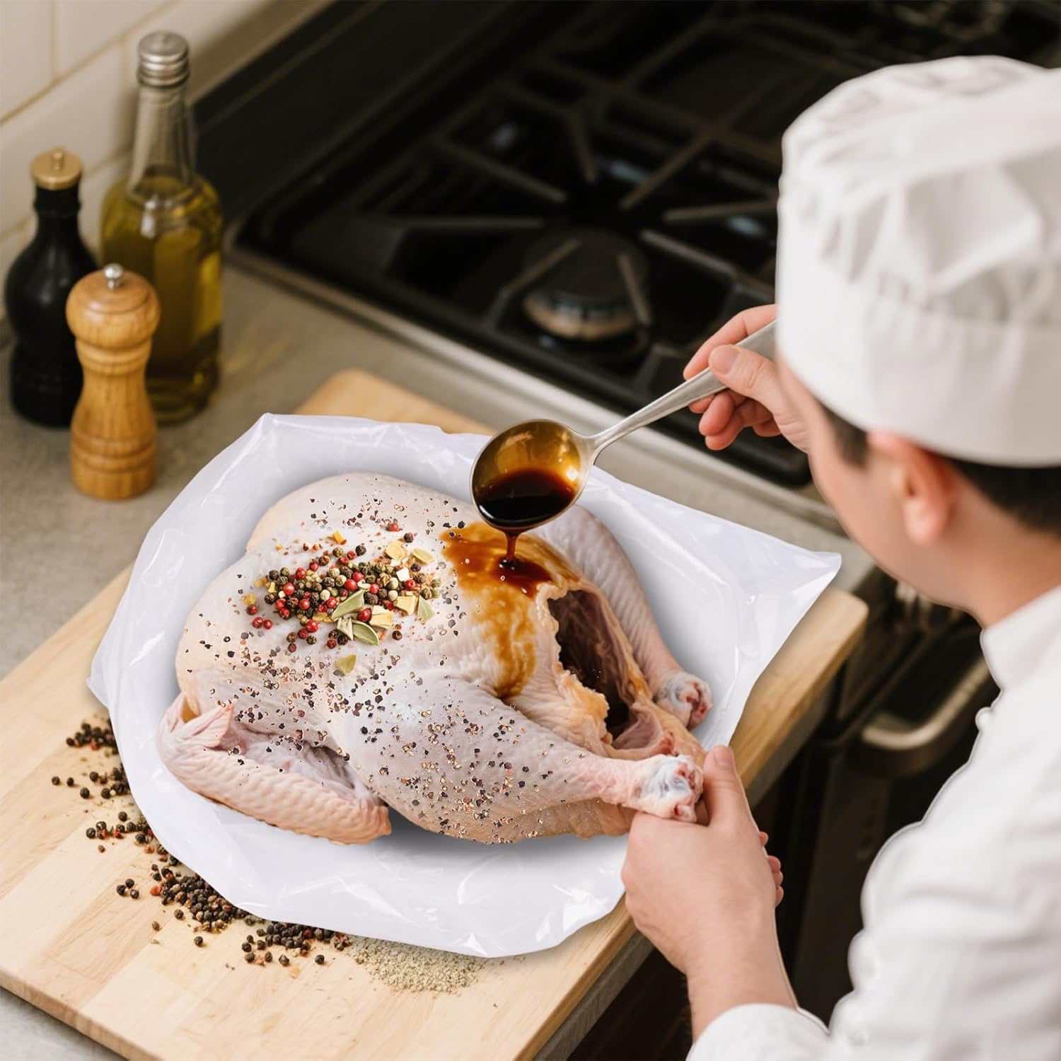 Perfect for Thanksgiving: Our Turkey Brining Bags are specifically designed for brining turkeys during the Thanksgiving season. The bags are large enough to accommodate a whole turkey, allowing the brine solution to fully penetrate and infuse flavors into the meat for a moist and flavorful result.
