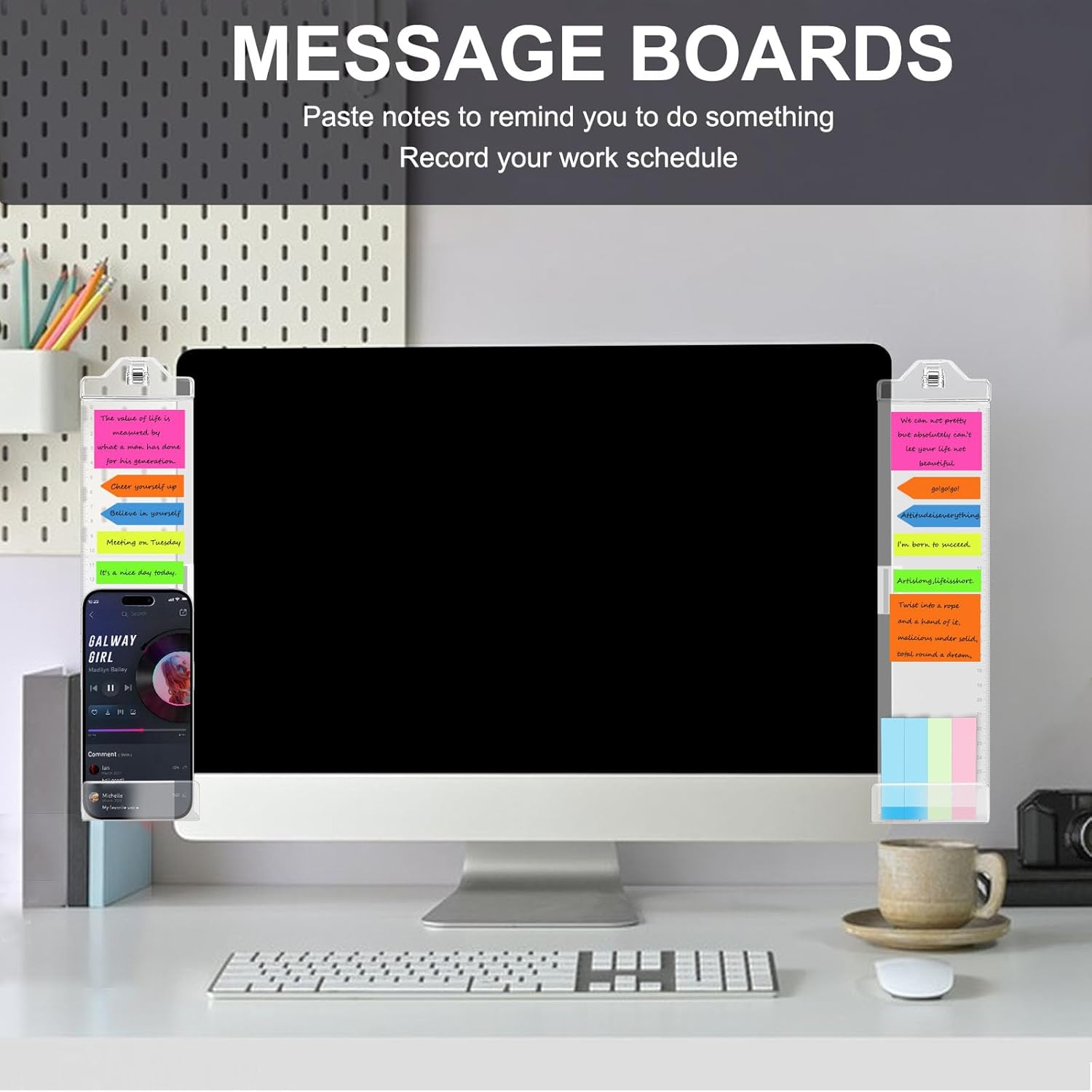 2 Pcs Monitor Memo Boards for Computer,Office Desk Accessories, Multifunction Acrylic Screen Message Reminder Pad Side Panel Phone Holder Organizer for Office Desktop, with Sticky Note