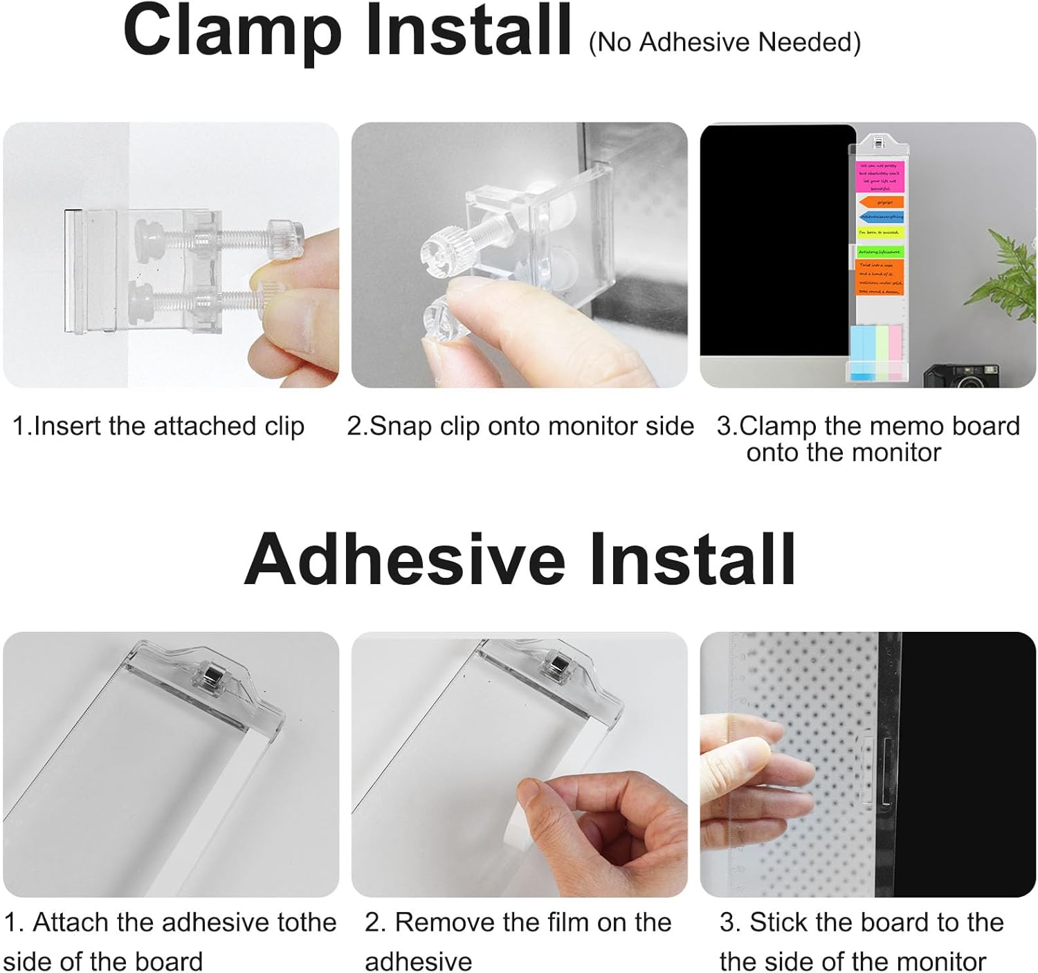 [Easier to install] this clear acrylic monitor message board is a must-have office accessory that can be easily installed and removed without residue. Just insert the clip into the hole and install it on the right or left side of the black edge of the screen, then tighten the screws, it won’t get in the way of your computer screen and prevent it from falling off. It makes a great holiday gift for coworkers, friends, classmates, family or relatives.