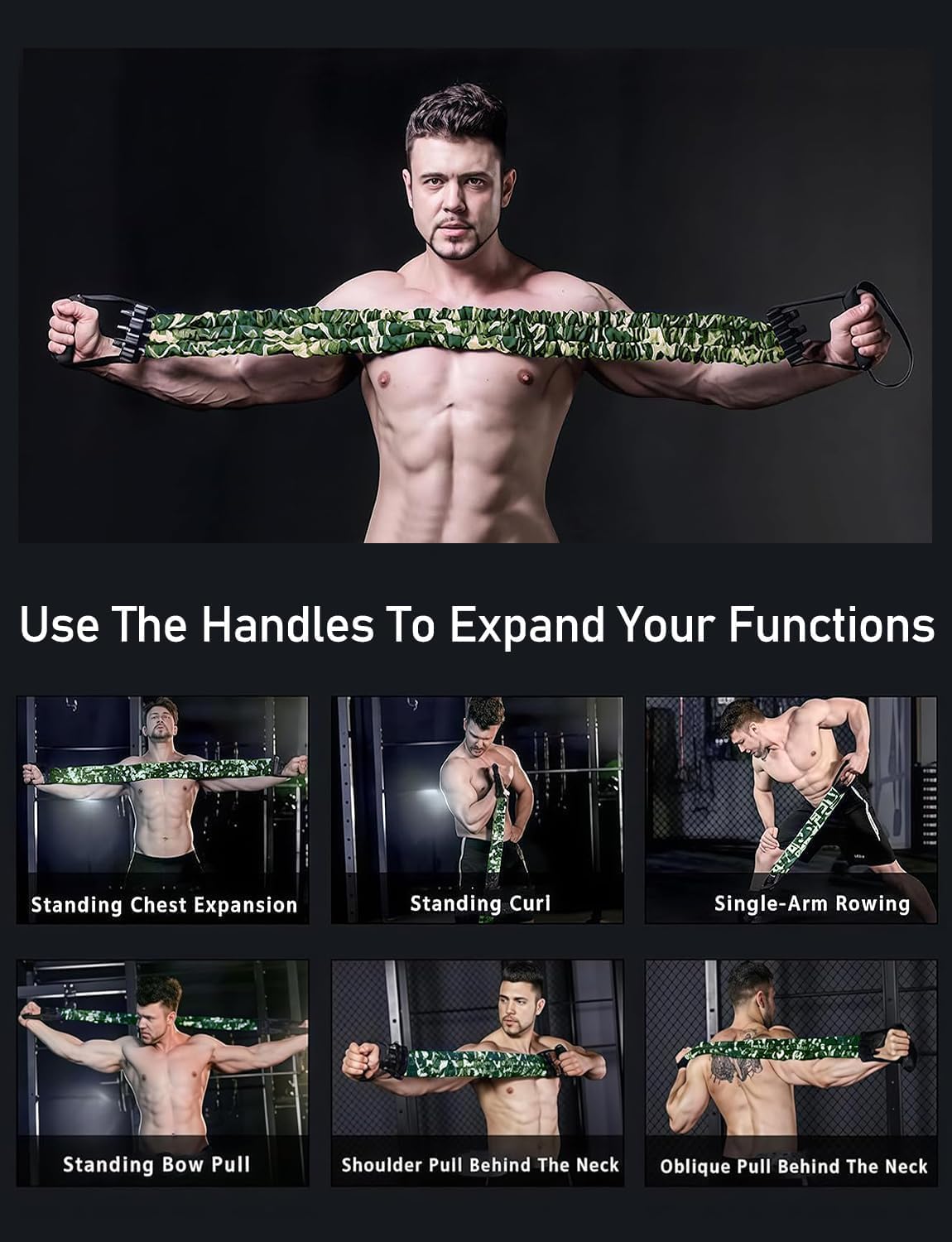【Camouflage Wrap Anti-Breakage】This natural latex resistance band uses camouflage wrapped latex tube to improve safety and minimize the risk of breakage. Stylish and durable, it is still reliable under high tension.