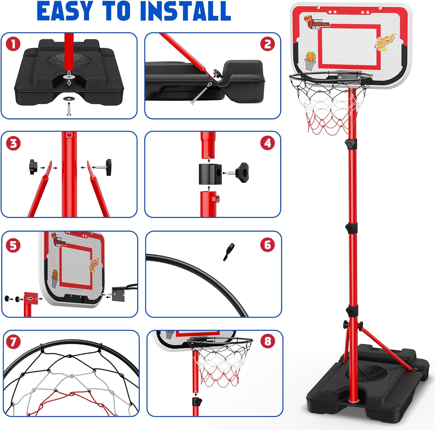 Safe & Sturdy Design: This set is made of safe and non-toxic materials. The edge of the hoop is smooth and not easy to hurt children.It uses a stable triangular stand, and the base can be filled with sand or water, or sandbags or other things can be placed on the bottom to reduce the shaking of the basketball stand, enhance stability, and ensure safe play