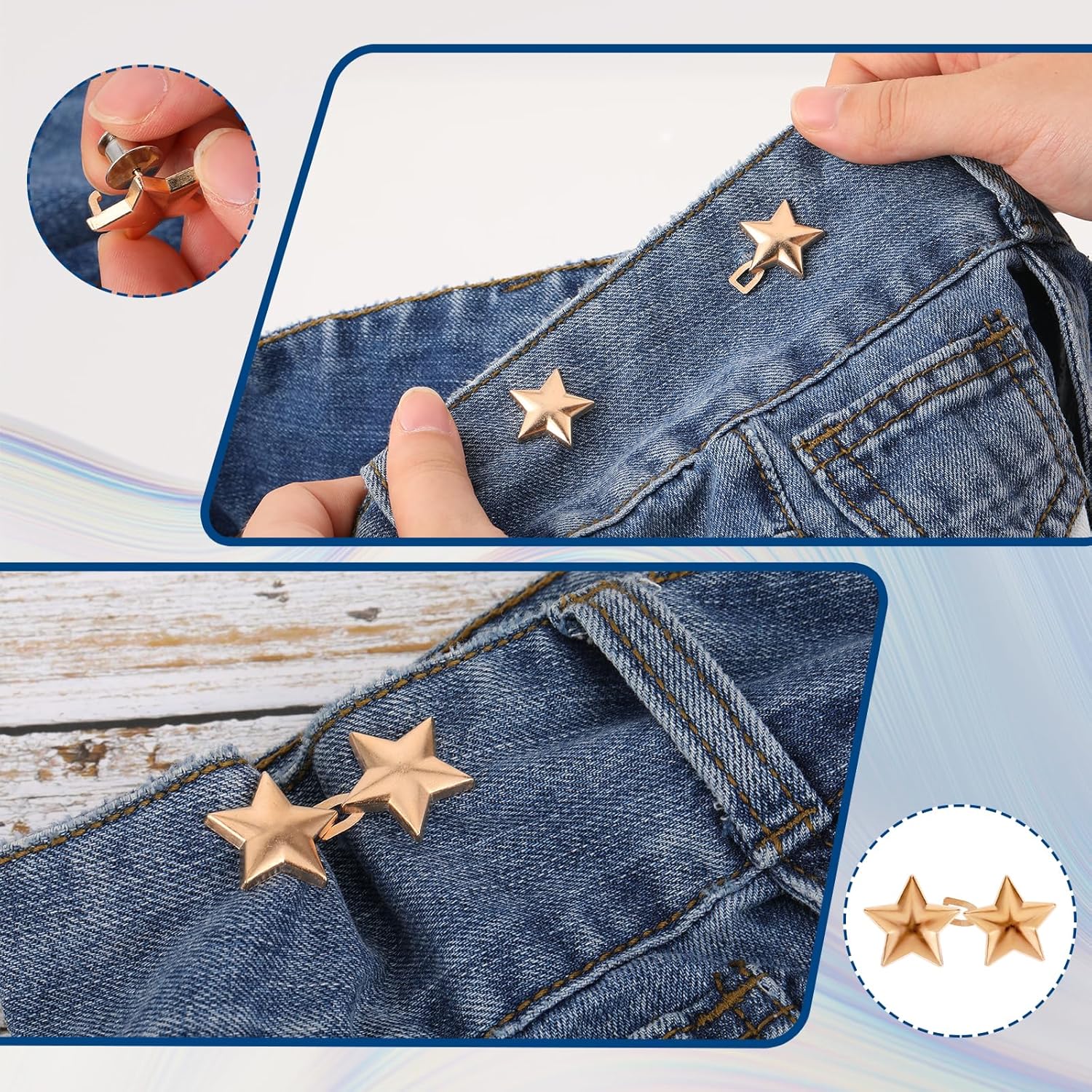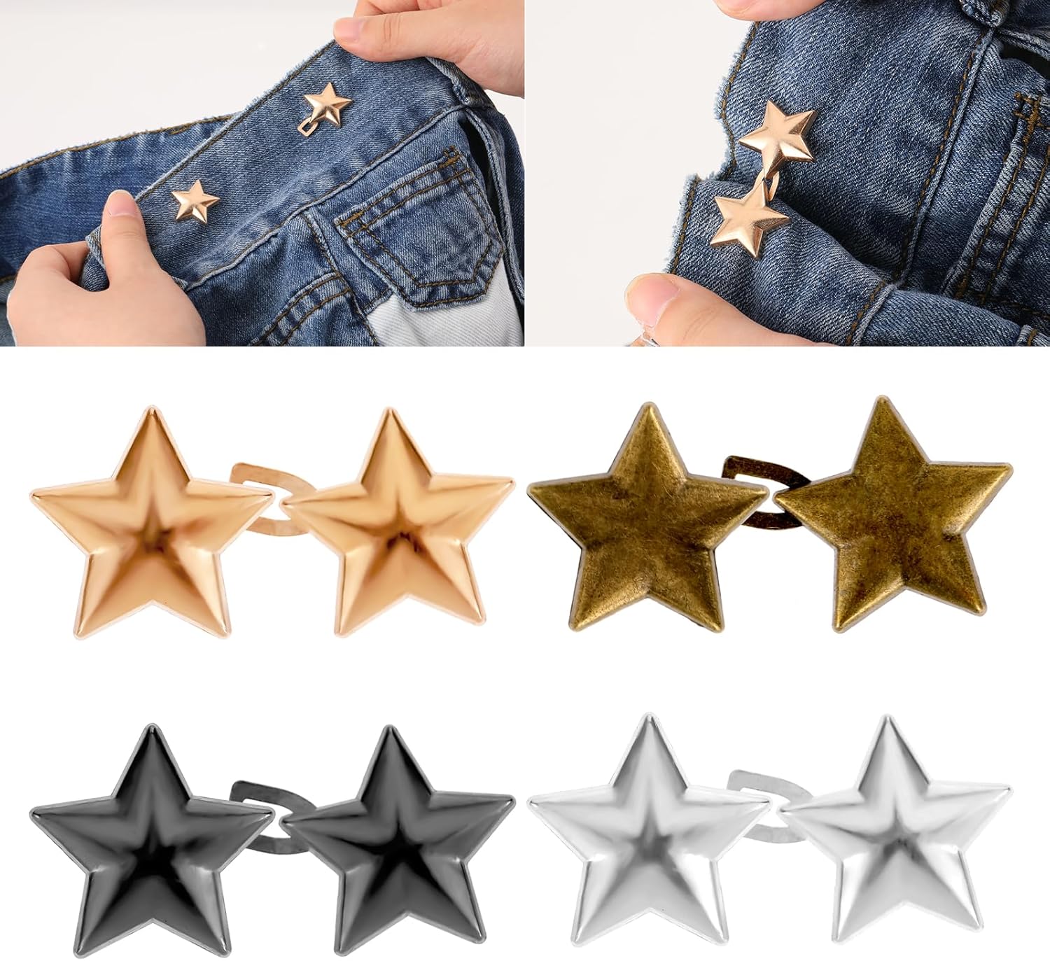 4 Sets Jean Buttons for Loose Jeans,Pants Button Tightener,Star Jean Clips Adjustable No Sewing Required Buttons Pant Waist Tightener Clothing Accessories for Jeans Pants Skirts Sleeves(4 Colors)