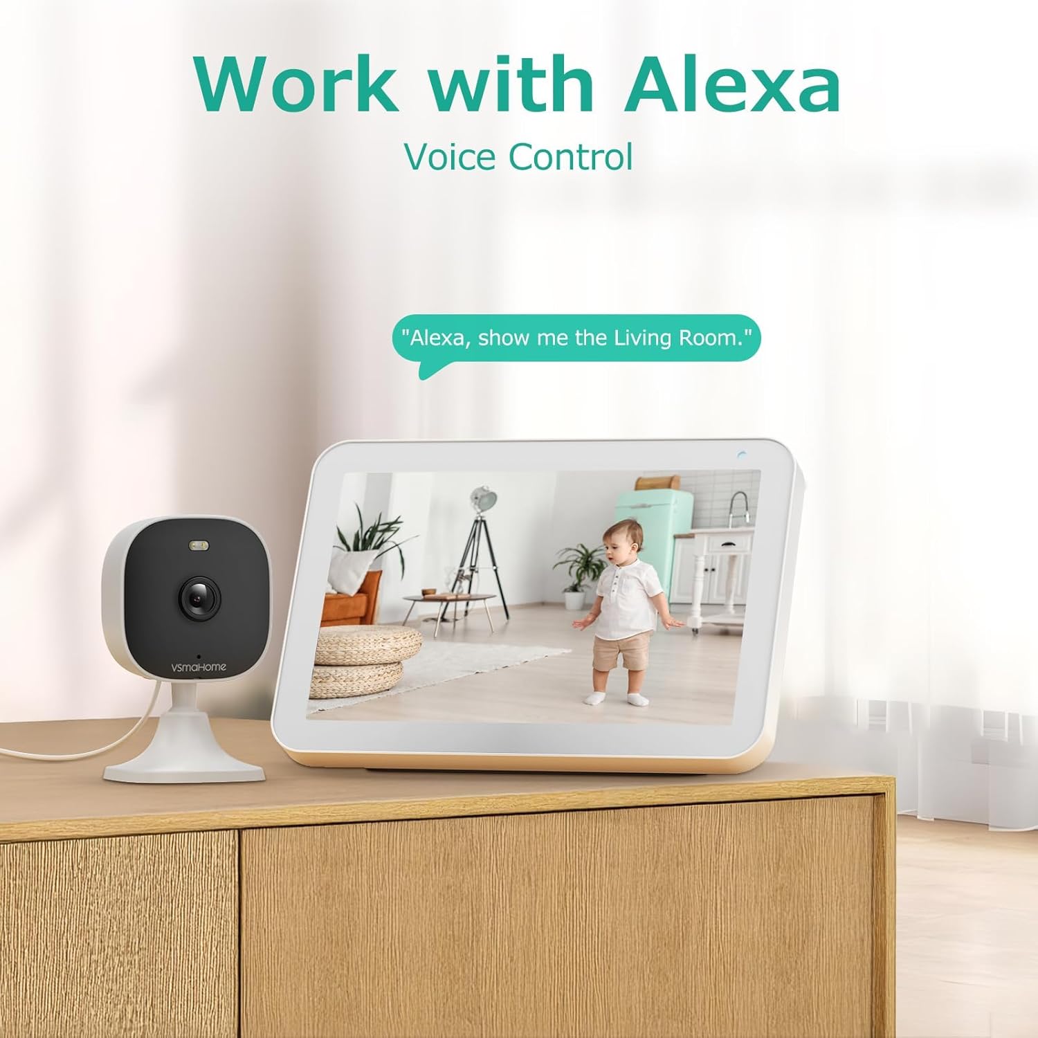 house cameras with audio and video supports 2.4g & 5g wifi, achieving longer distance and faster signal transmission. Undoubtedly Work with Alexa.