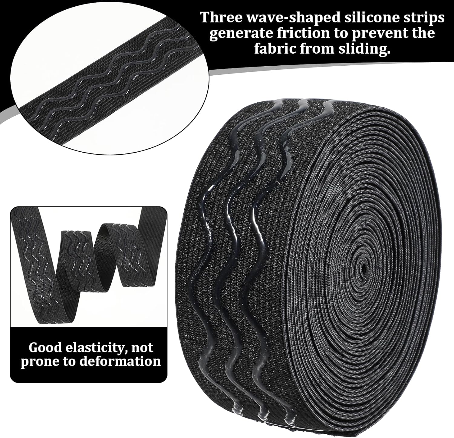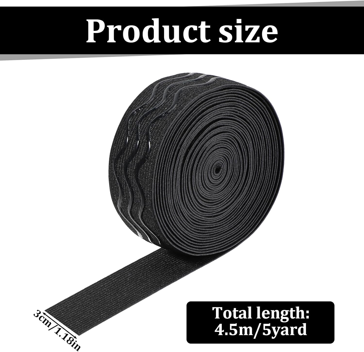 5 Yard Silicone Gripper Elastic Band Non-Slip Elastic Band Clothing Tape to Keep Clothes in Place 1.2 Inch Wide Black Silicone Gripper Tape for Clothing Project Wig Making Accessories