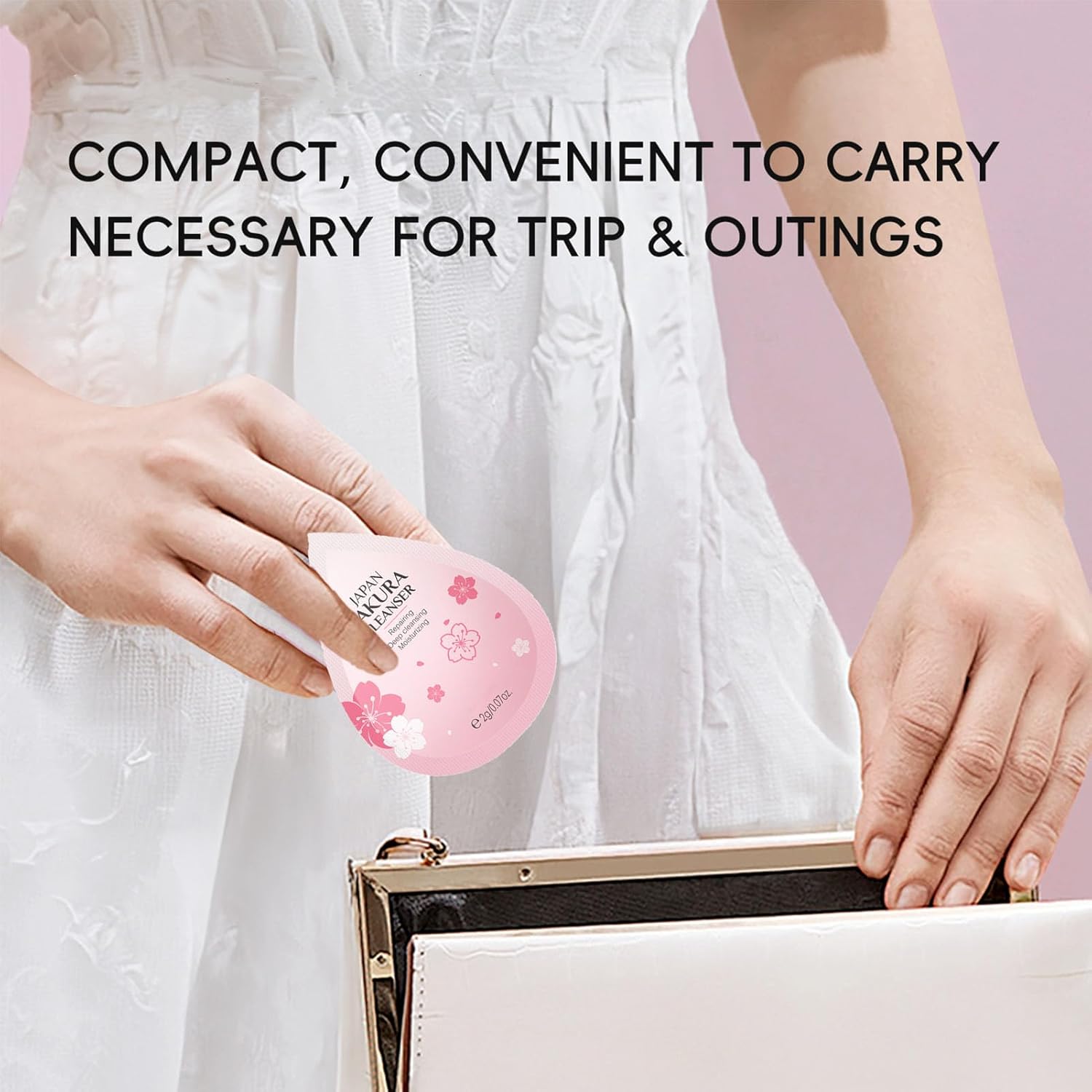 Travel Size Skin Care Set: 60 disposable bags of skin care products including Face Wash, Serum, Toner, Lotion, Moisturizing Cream, Sakura Mud Mask (6 types, 10 pieces each)