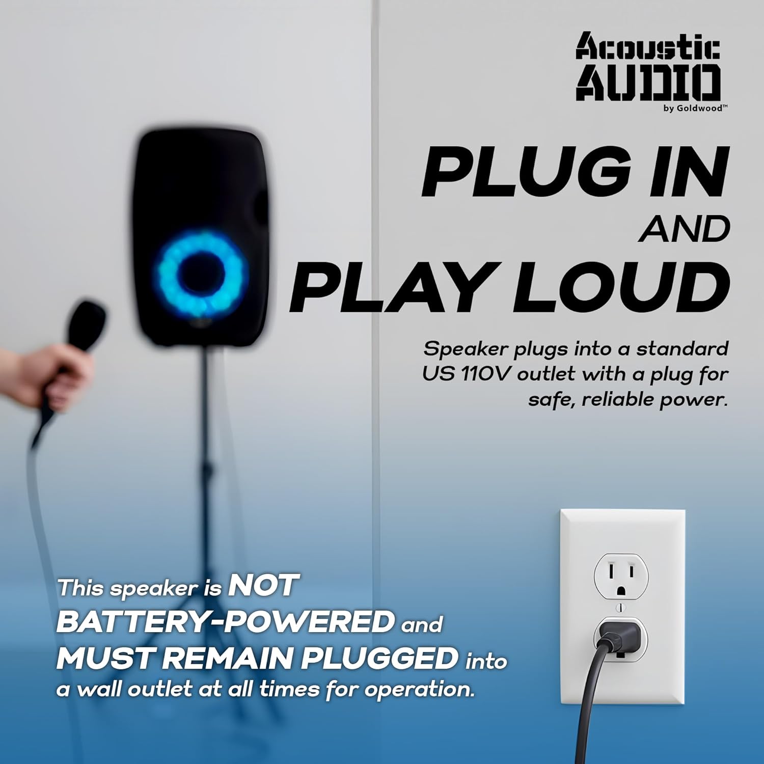 Be the first to review “Acoustic Audio by Goldwood 1000W Bluetooth Speaker w/ Flashing LED, Large Plug-In PA System w/ Stand, Mic, & Remote for Karaoke, DJ, or Tailgate Party”