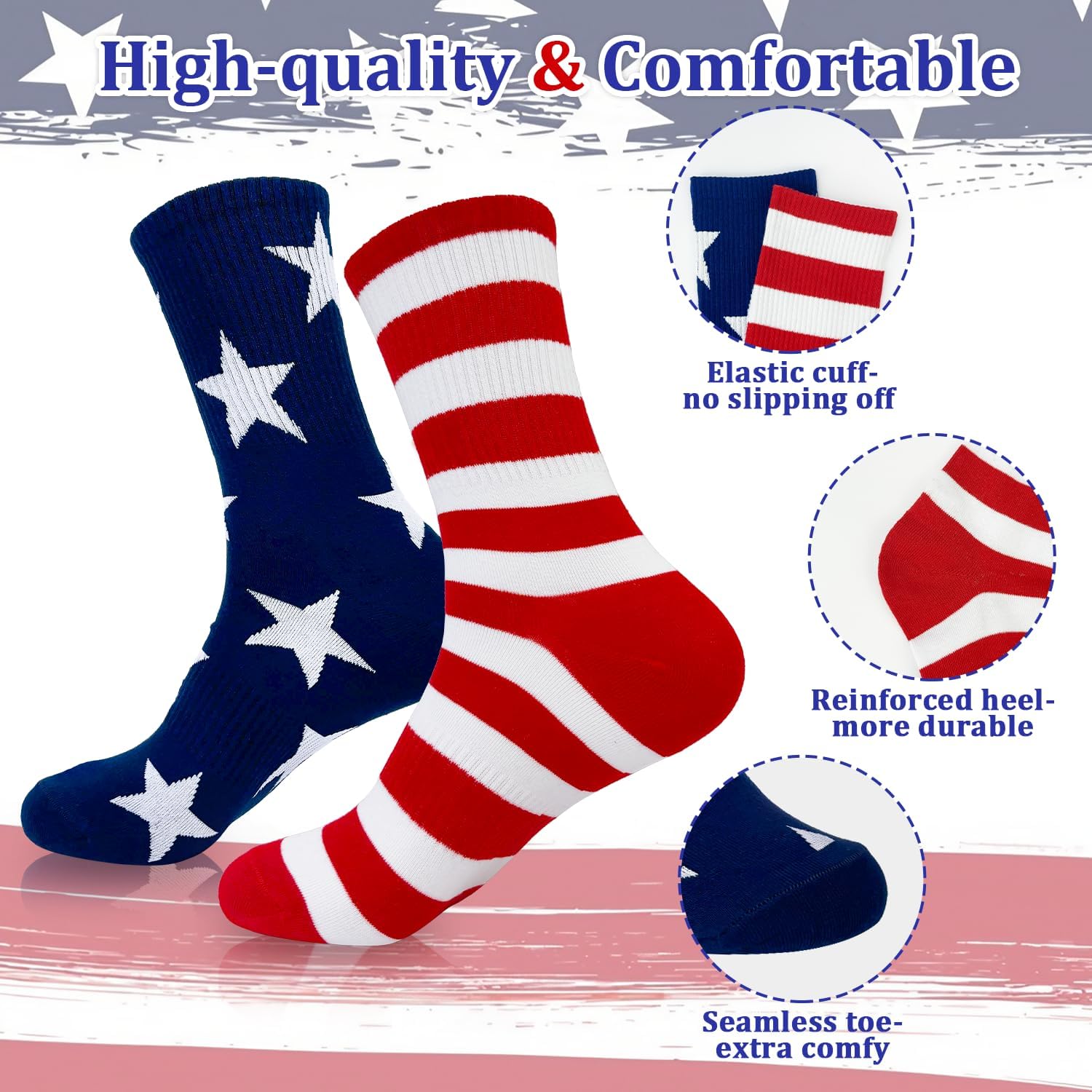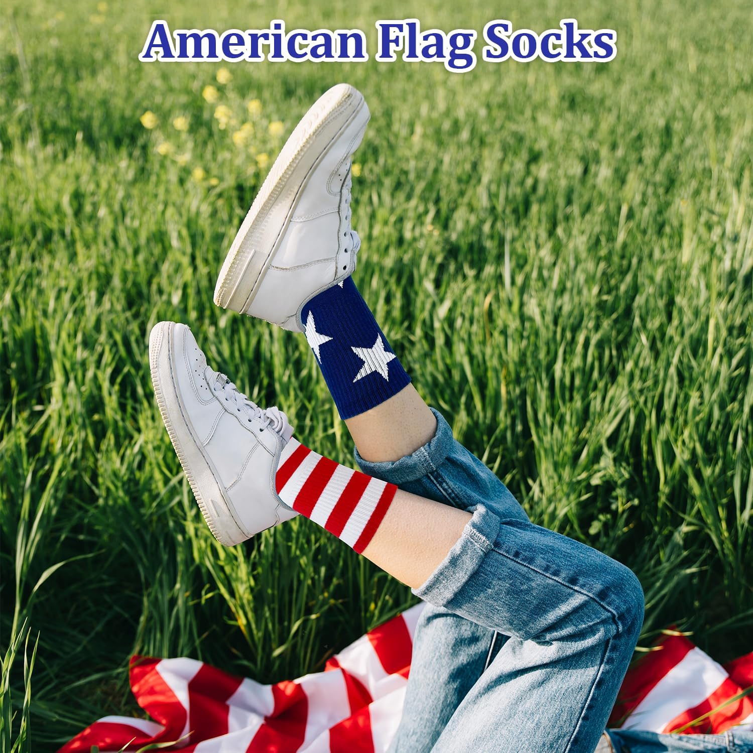 American USA Flag Socks for Women Men, Patriotic Red White and Blue Stars & Stripes Accessories for Outfits, Birthday Team Gifts for Adults,Vietnam Veterans,Friends