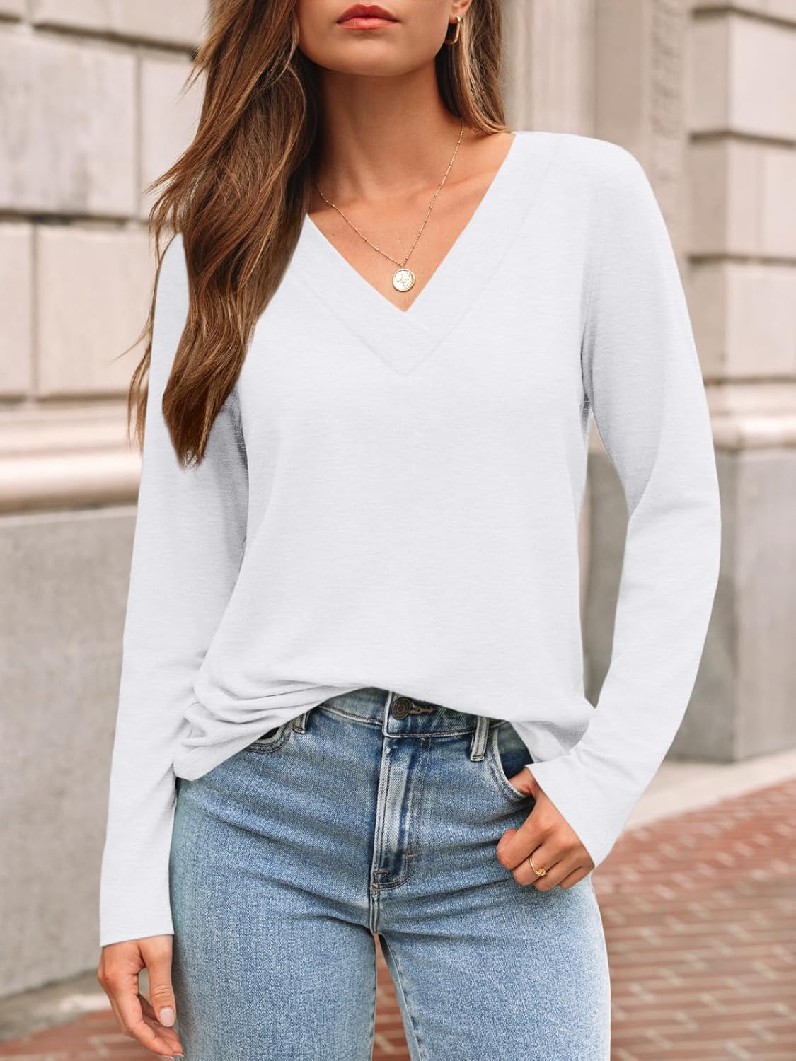 AUTOMET Long Sleeve Shirts for Women Tops V Neck Casual Top Comfortable Shirt Soft Basic Tees Women Blouses