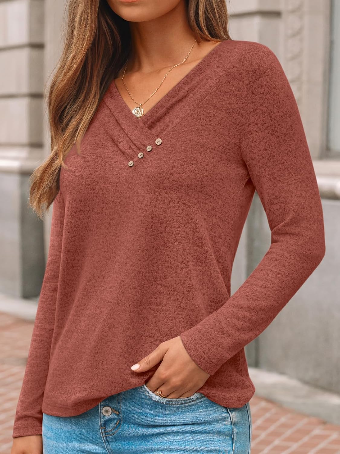 AUTOMET Womens Long Sleeve Tunic Top V Neck Button Shirts 2025 Dressy Casual Business Blouses