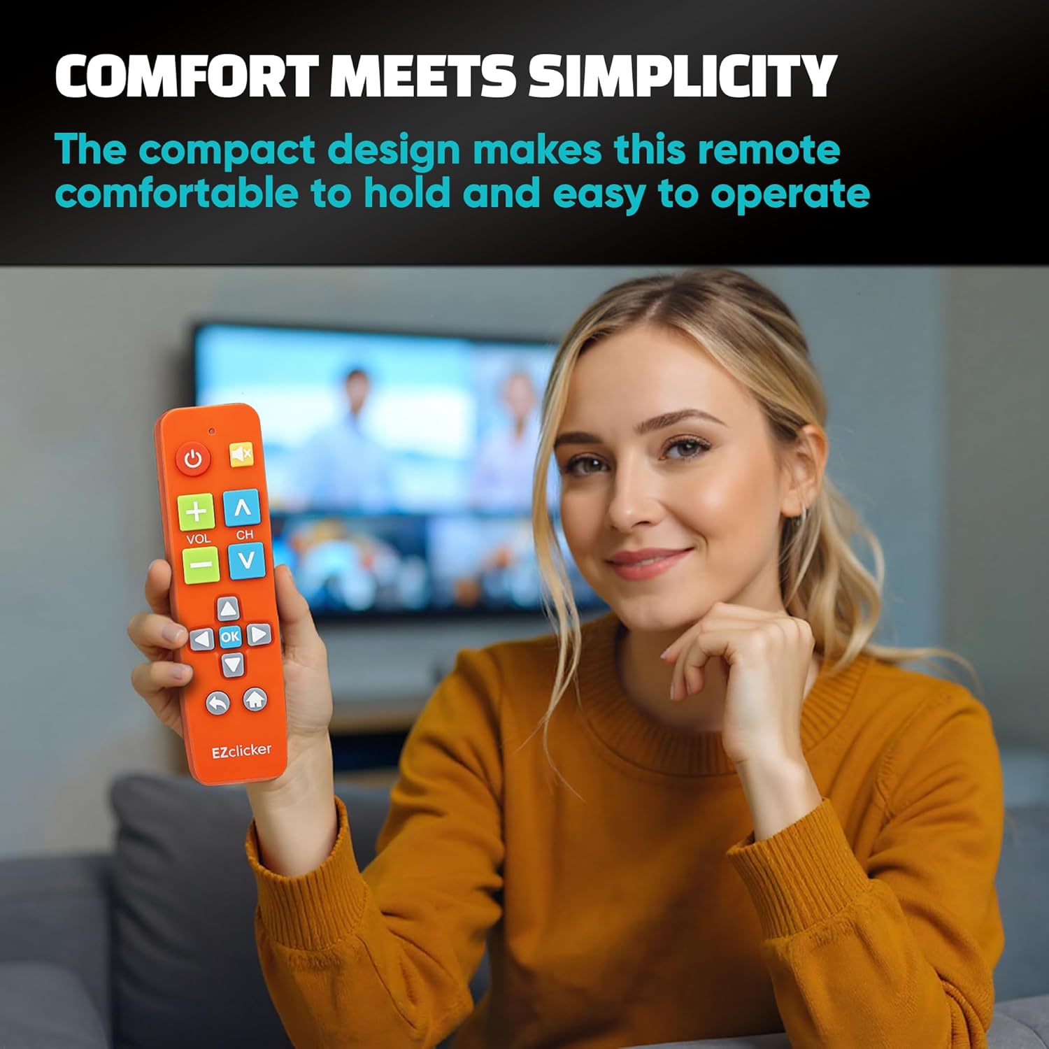 Easy Big Button Design: The remote includes specialized features like an extra-large enter button, big button universal controls, and tactile feedback, catering specifically to seniors and those with limited dexterity or vision. It aims to provide a more comfortable and accessible user experience.
