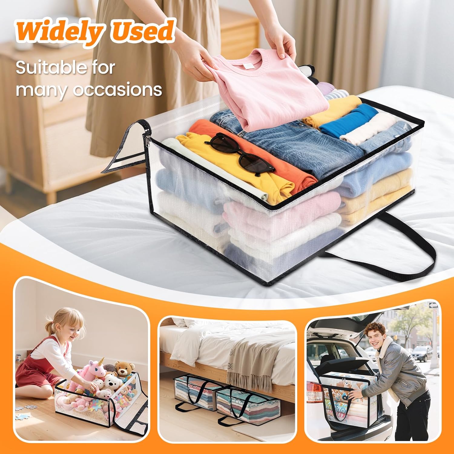 Clear Visibility for Quick Identification: The transparent design allows you to easily see the contents without opening the bag, making it easy to organize essentials like blankets, clothes, or books without wasting time unpacking