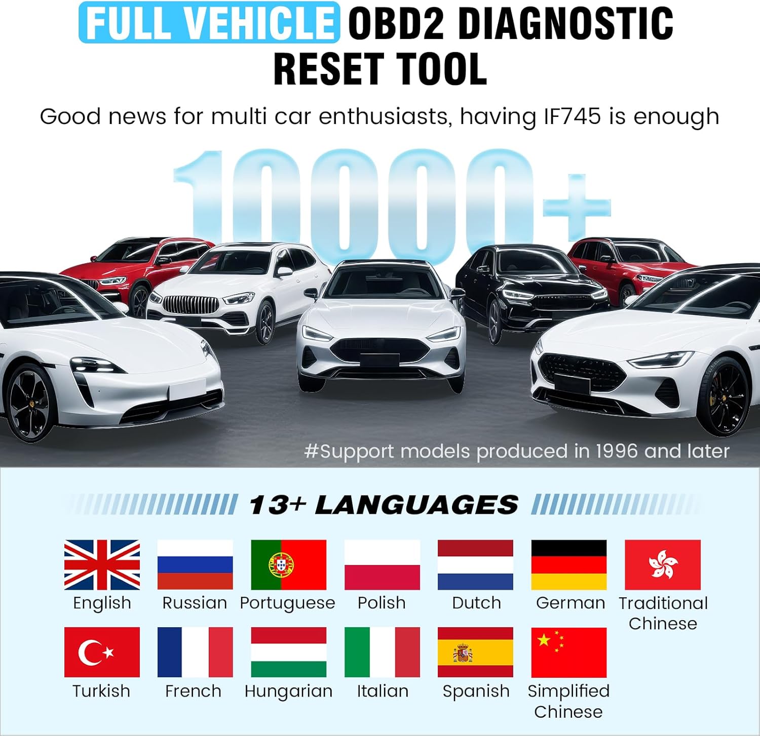 【✨10,000+ Car Models, AutoVIN, 13 Languages】The IF745 diagnostic scanner covers 73+ global car brands and offers support in 13 languages, making it perfect for DIYers, auto mechanics, or as a thoughtful gift. With a single-click AutoVIN feature, it instantly retrieves vehicle serial numbers, streamlining diagnostics for users globally. This adaptable tool balances user-friendliness with precision, catering to both personal and professional requirements.