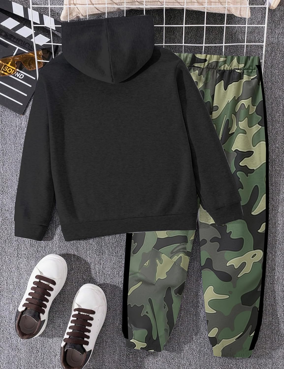Boys Clothes Boy Outfits 2-Piece Long Sleeve Hoodie and Camouflage Pants Boys Fall Winter Clothes for 6-16 Years