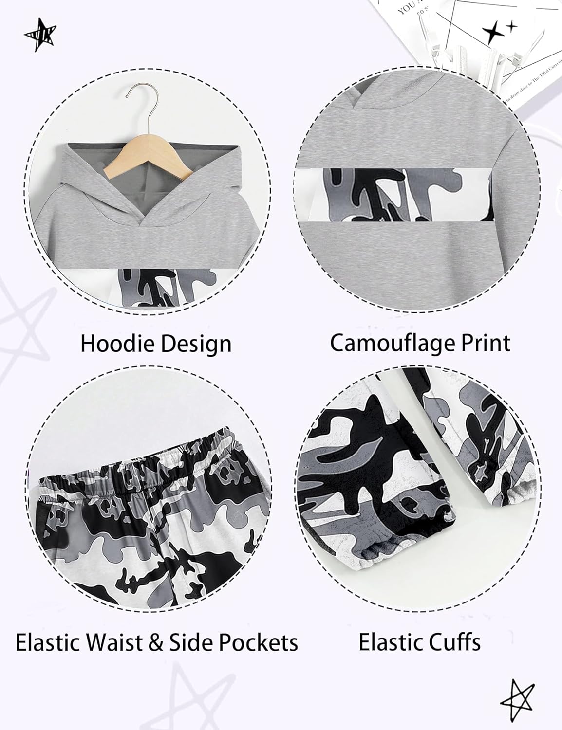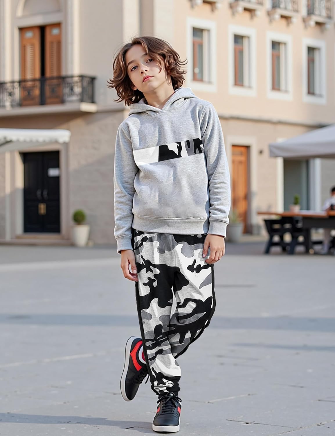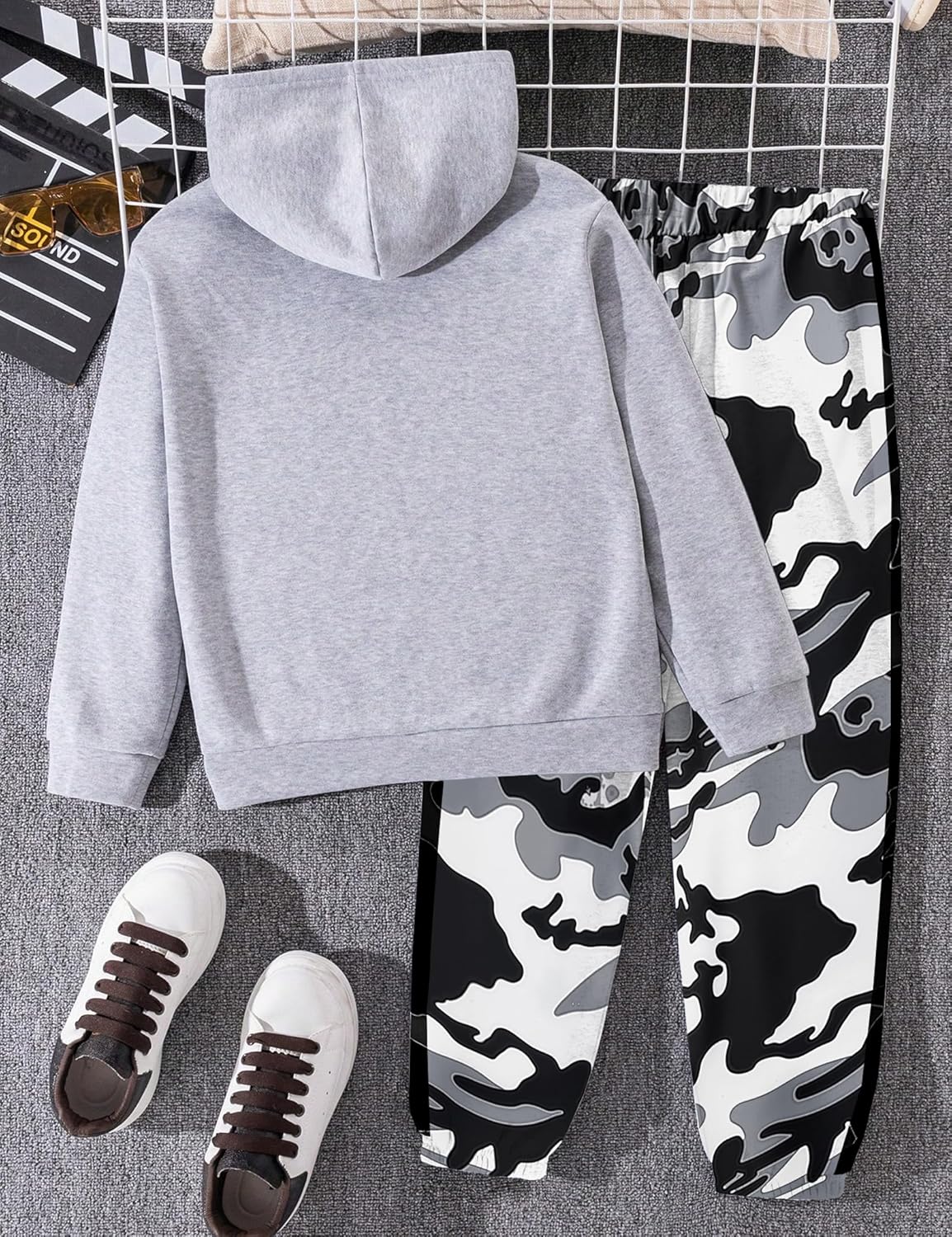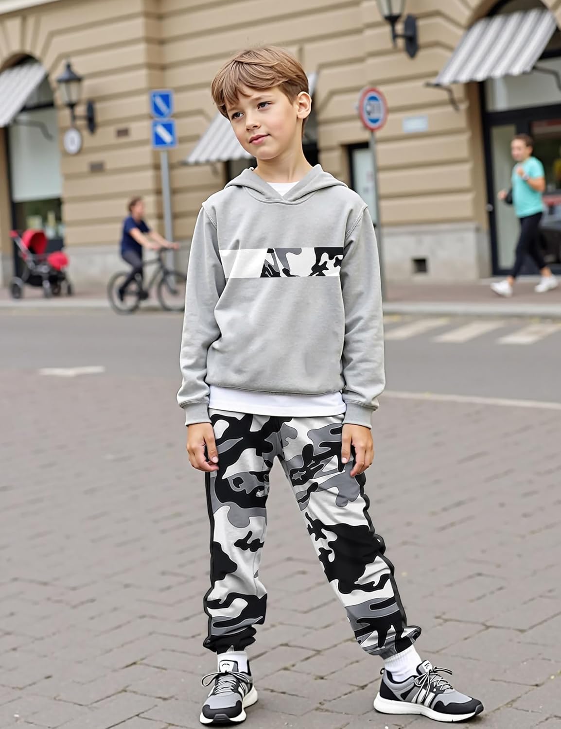 Boys Clothes Boy Outfits 2-Piece Long Sleeve Hoodie and Camouflage Pants Boys Fall Winter Clothes for 6-16 Years