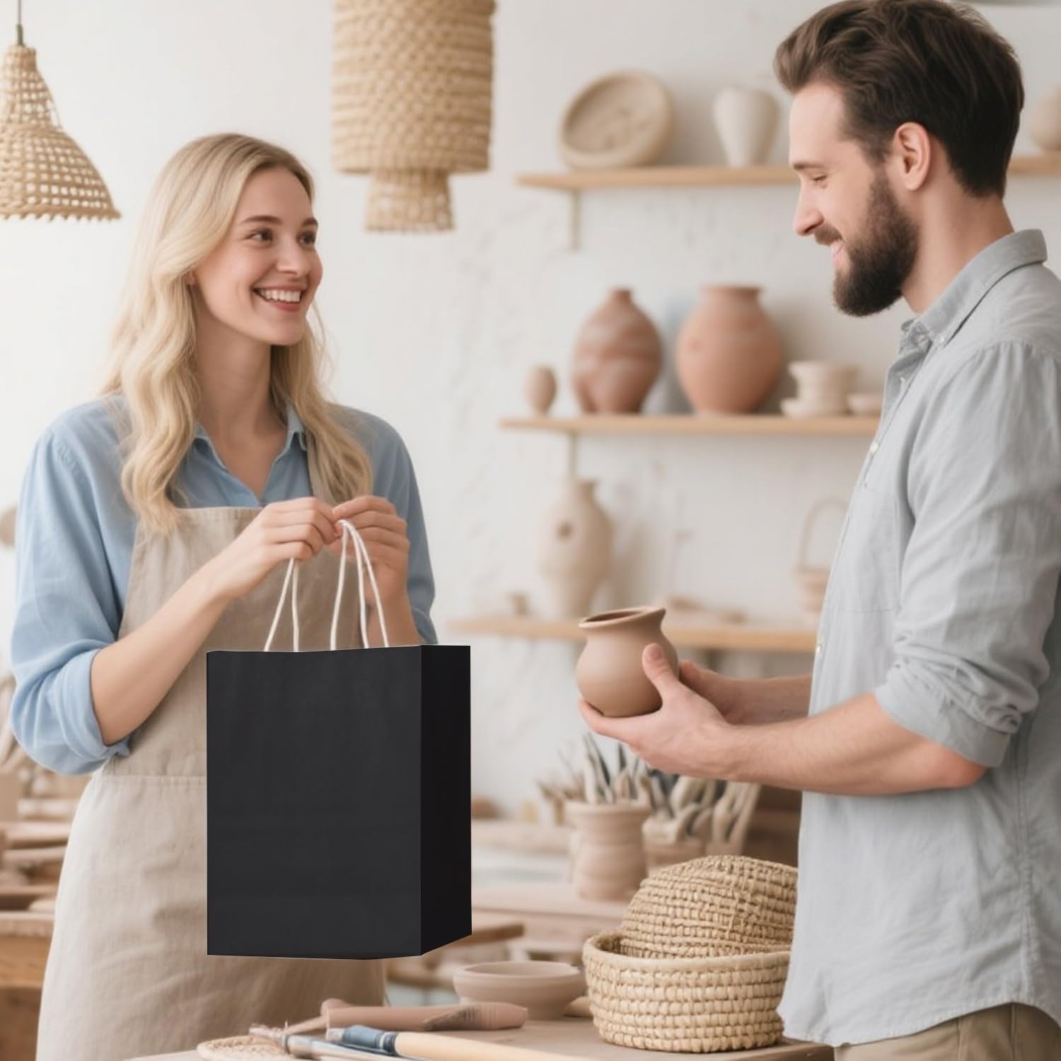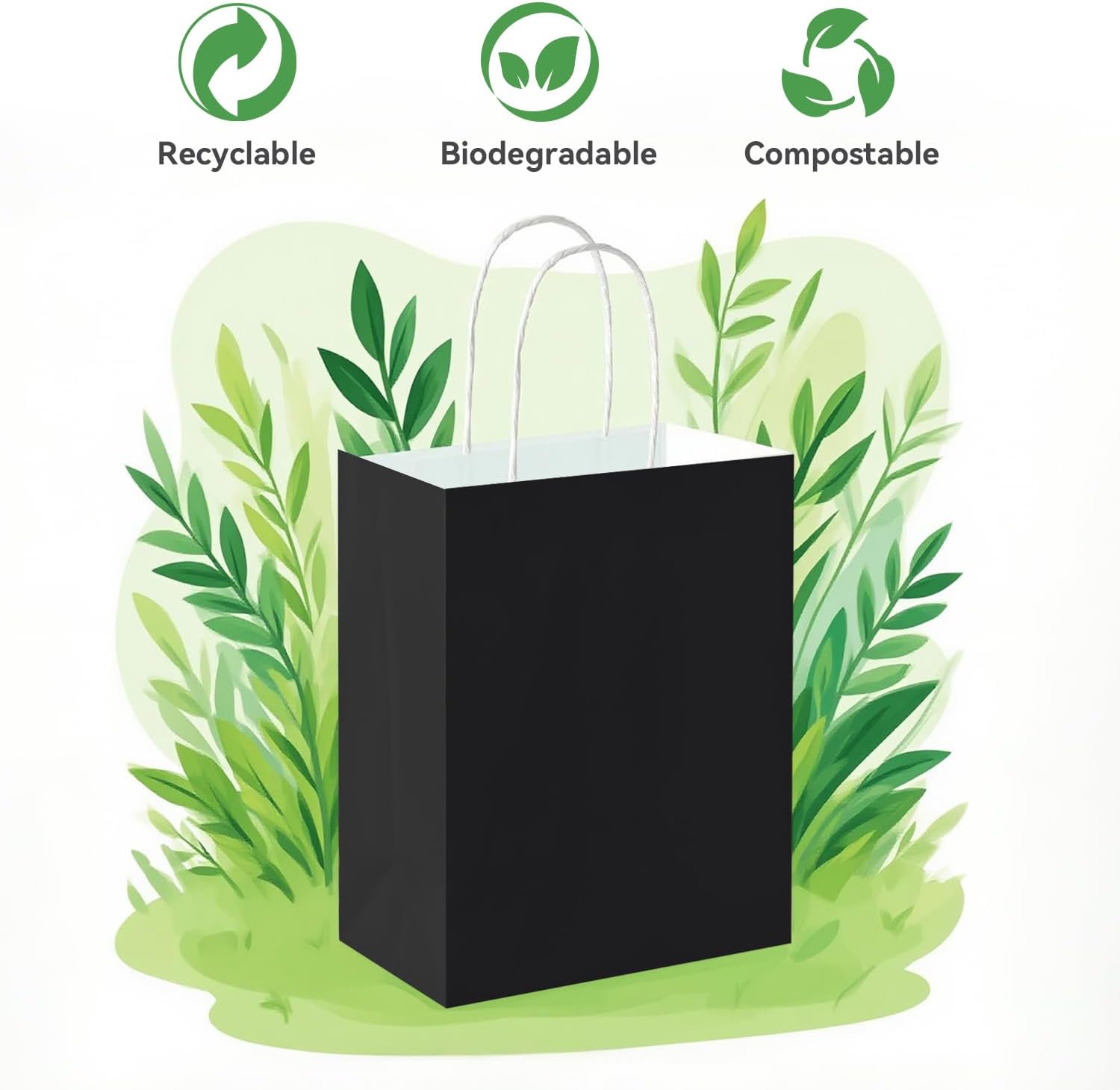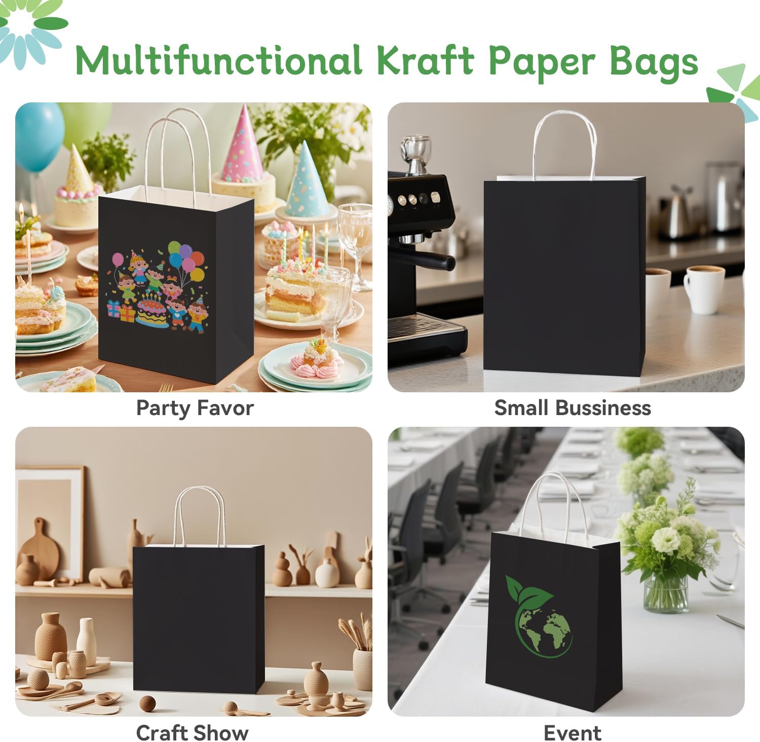 Brothersbox 100Pcs Black Paper Gift Bags Medium Size 8×4.75×10 inch, Kraft Paper Bags with Handles Bulk for Shopping, Craft, Business, Retail, Party Favor, Takeout, Goodie, Grocery