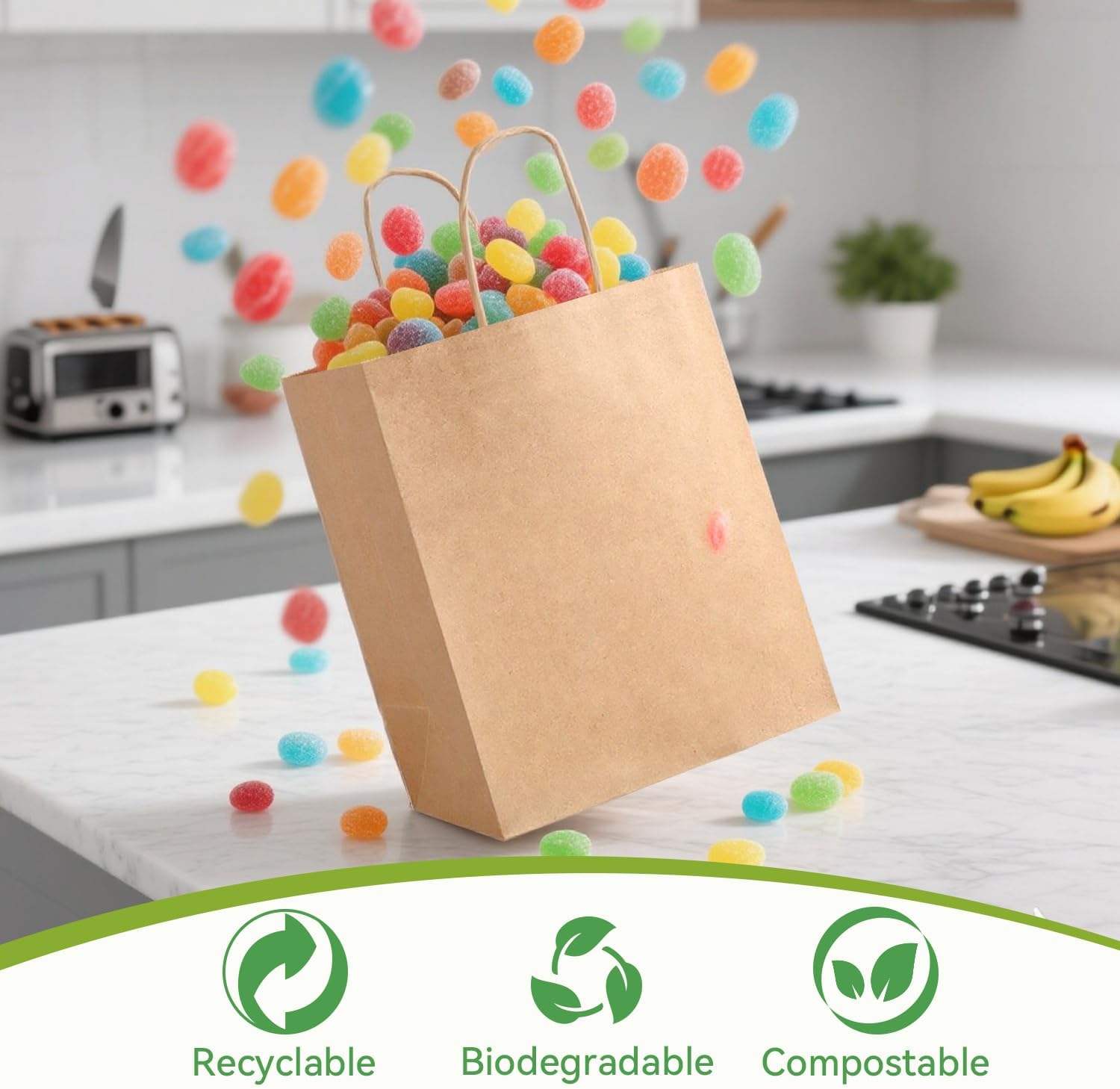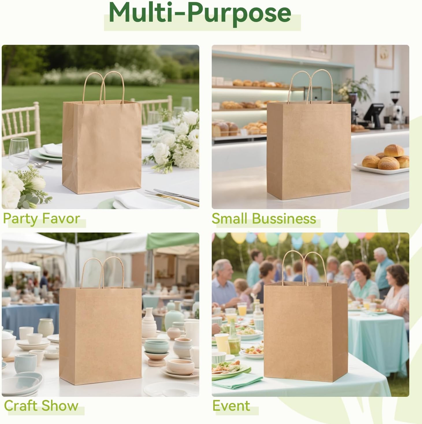 [Paper bags – 100pcs]: These medium brown paper bags with handles bulk are 8×4.76×10″ in size, which makes them perfect for anyone selling crafts. You can use them to bag various small and medium-sized craft items or lightweight artworks, such as homemade confections, cookies, pickles, jam, soap and more. They are also ideal for products at fairs and farmers’ markets. Additionally, they work perfectly for To-Go orders or as shopping bags for customers without fear of breaking.