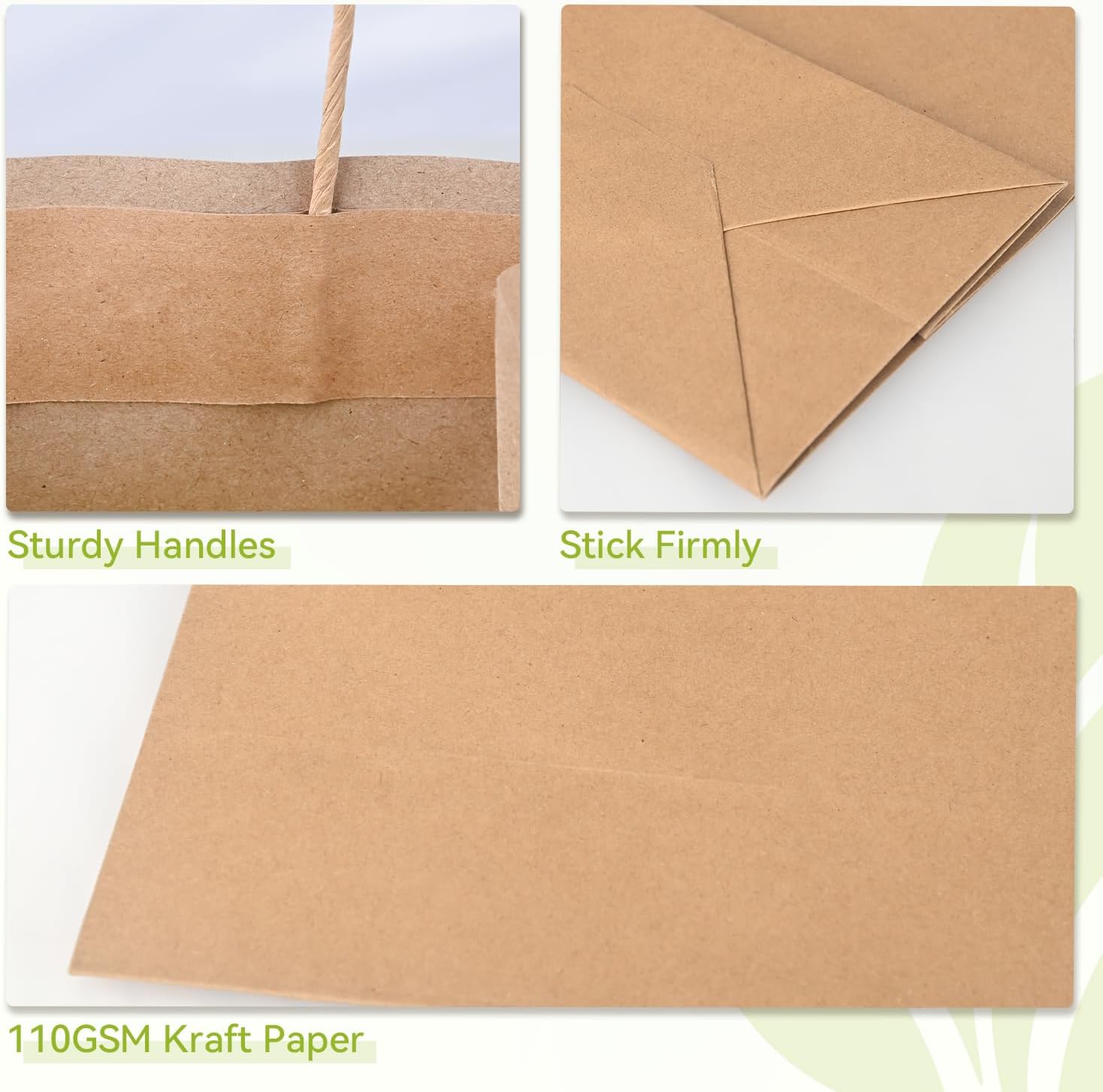 [Good Durability]: The bottom of our brown gift bags with handles bulk is sealed with adhesive to provide added strength and support to prevent bottom leakage. We reinforce the inner side of the lifting rope and apply glue twice to improve the load-bearing capacity of the kraft bags. Additionally, the bag opening is easy to open and does not stick together. Brothersbox Paper Bags with Handles Bulk are strong enough to carry all the medium gifts you put inside.