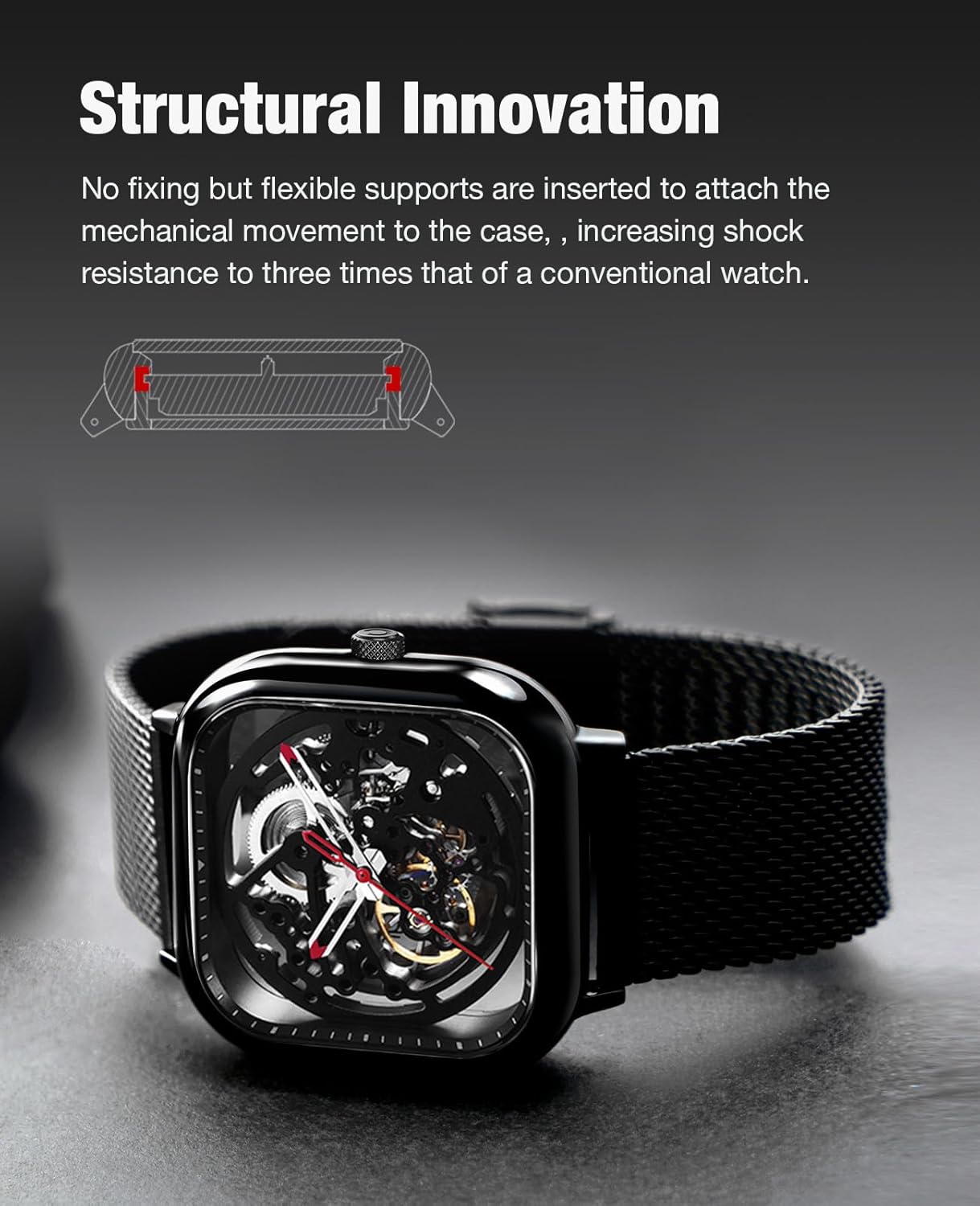 Increase the shock resistance to three times higher than traditional auto winding mechanical watch.