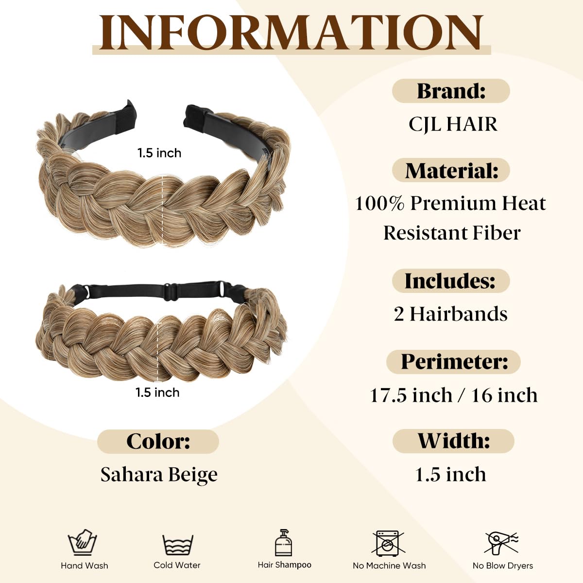 CJL HAIR 2PCs Braided Headbands Hair Piece for Women Synthetic Hair Hoops Head Bands Handmade Braid Hairband Accessories Elastic Stretch Headwrap Sahara Beige