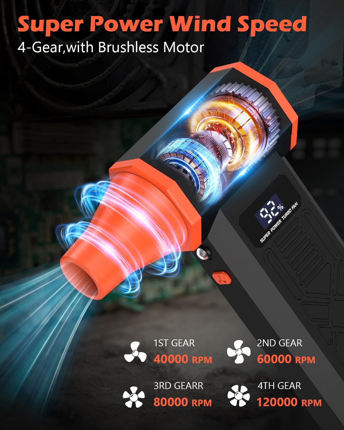 Powerful Performance & 4-speed Adjustable: Experience strong airflow with our brushless motor, reaching speeds of up to 120,000 RPM and a maximum wind airflow of 45 m/s. With 4 adjustable speed settings, this electric air duster effortlessly handles a variety of tasks