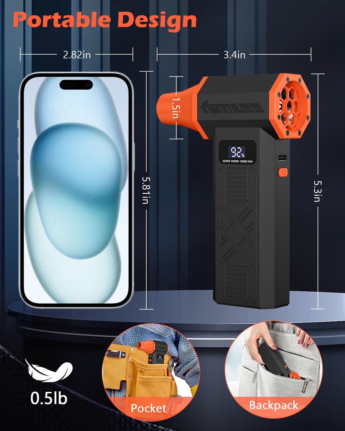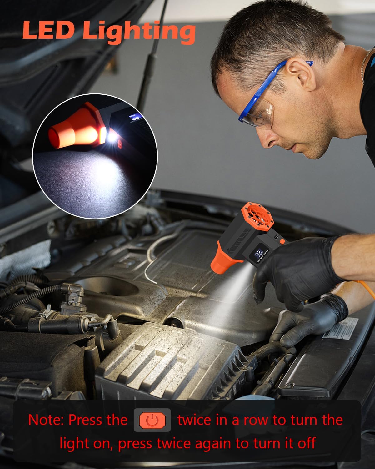 Compact Design with Built-in LED Light: This mini air duster cleaner measures just 5.3×3.4×1.5 inches and weighs only 0.5lb, making it highly portable and easy to slip into a toolkit, bag, or car. Built-in LED light illuminate dark corners for better cleaning, or serve as nighttime illumination and emergency lighting