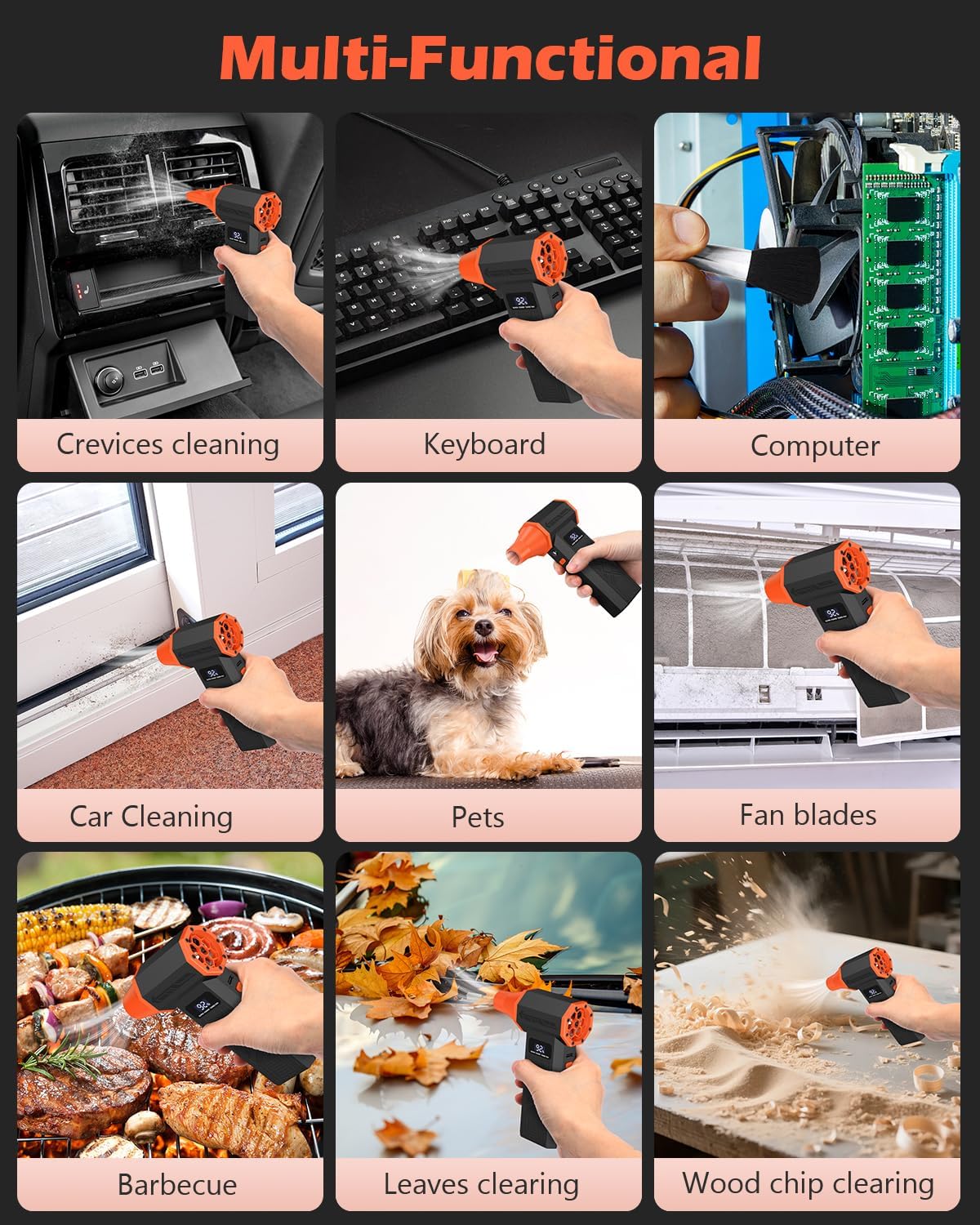 Economical & Reusable: Ditch single-use air cans! Our cordless air blower can be recharged repeatedly for extended use, serving as a sustainable alternative to disposable compressed air cans while enhancing your cleaning experience