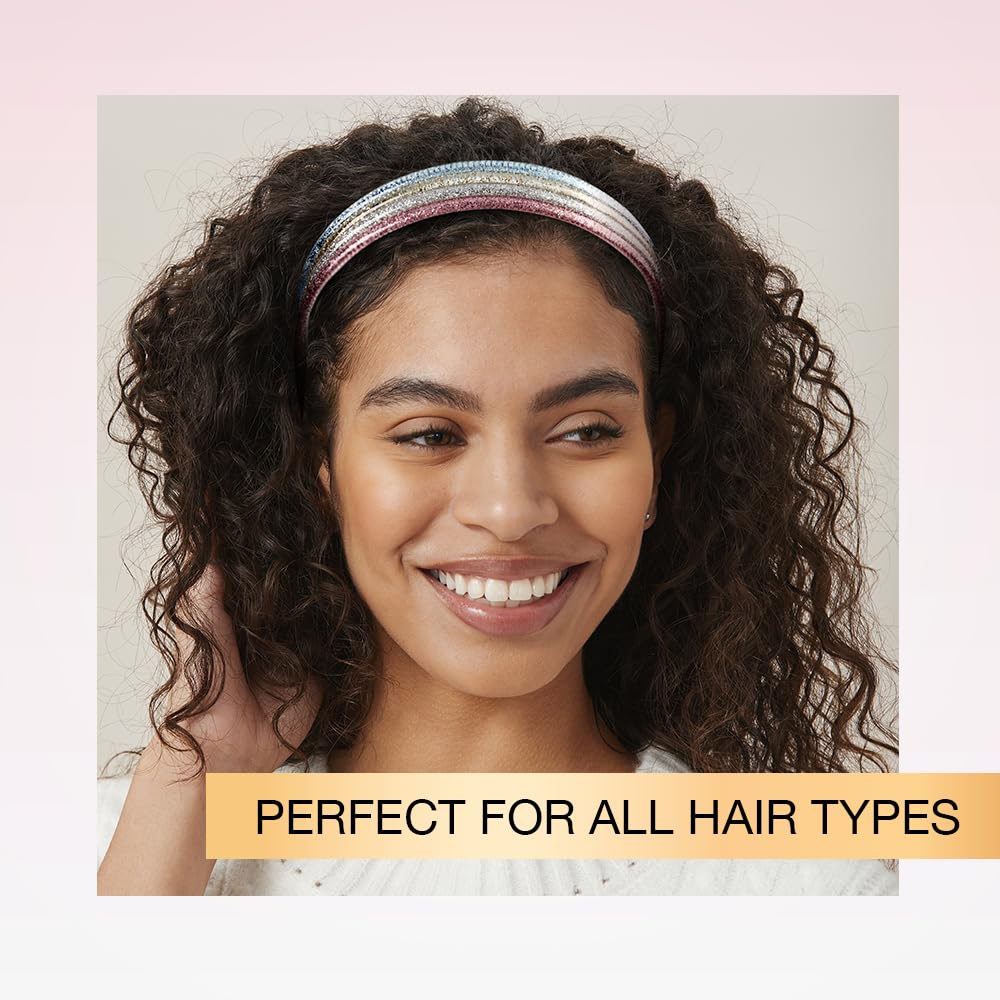 Shine bright with this 4-piece sparkle headband set from Scunci by Conair, featuring sparkly shades of pink, icy blue, silver, and champagne. These easy-to-wear, thin headbands keep your hair in place while adding a touch of glam to any outfit. From day to night, they bring instant shine to your everyday style and help you stand out.