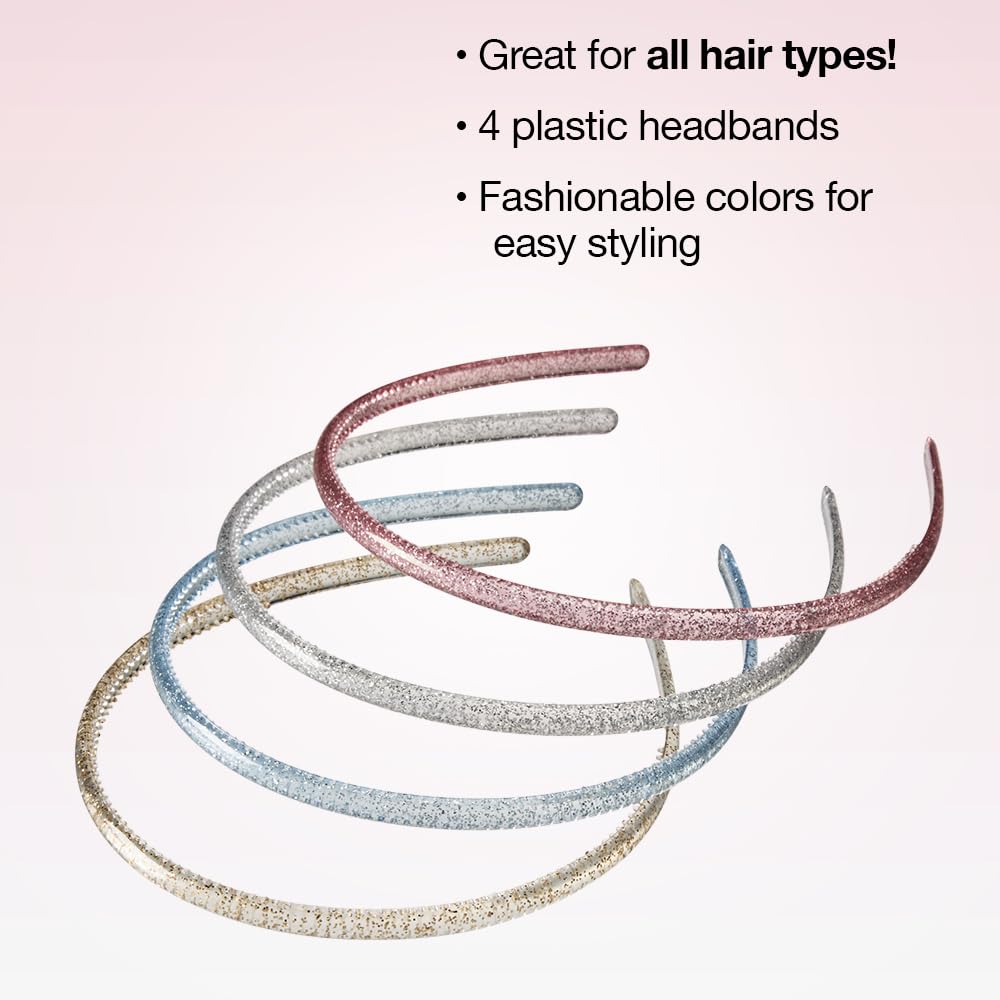 CONAIR Scunci Effortless Beauty Skinny headband -plastic Headbands for Women and Men – hair accessories for women – holiday headwear – gifts for her – stocking stuffers – Assorted Glitter – 4 Count