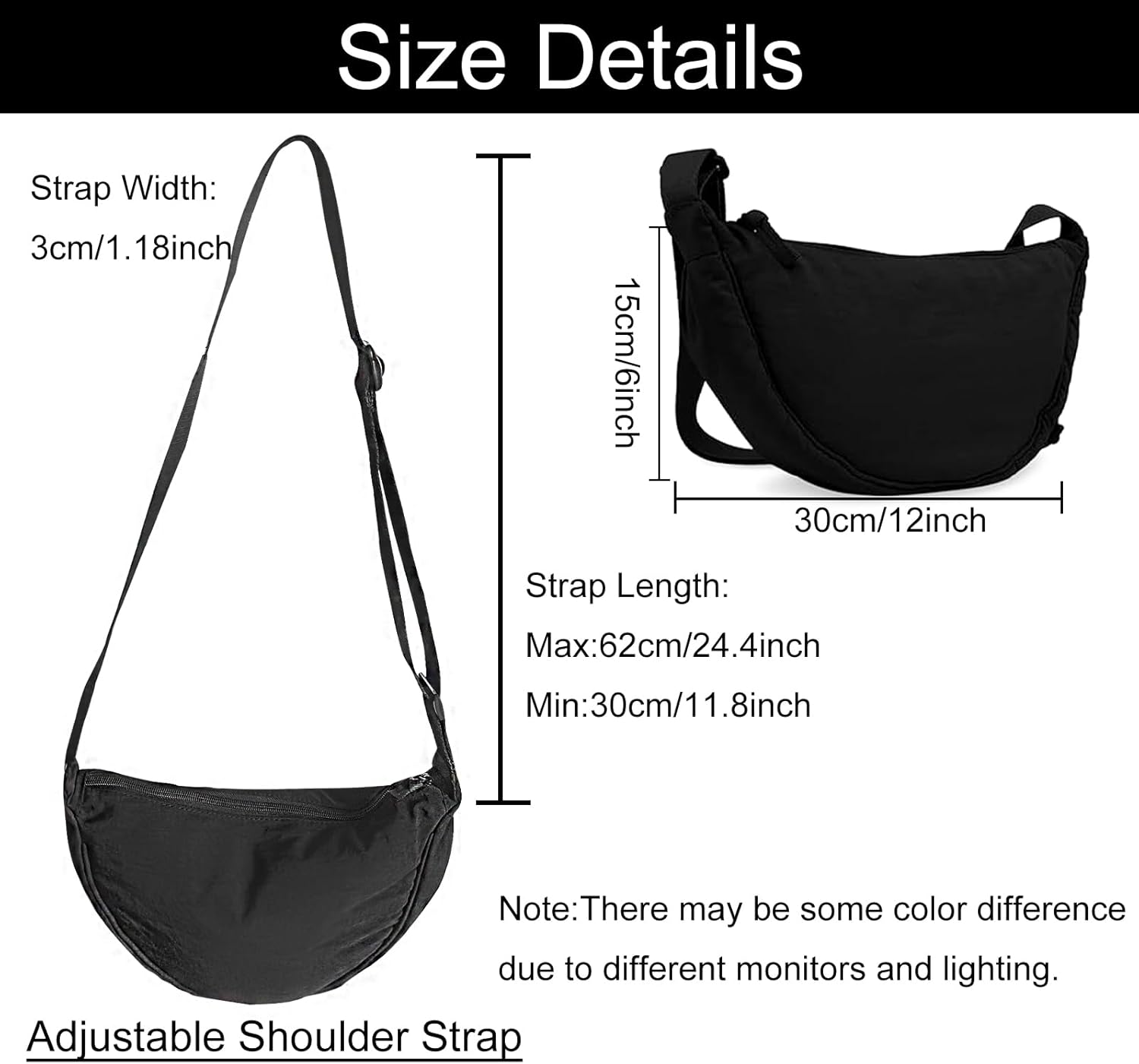 High Quality Material: The crescent bag is made of durable and soft nylon fabric, water-resistant, lightweight, the body of the bag is crescent-shaped, foldable and easy to clean. Suitable for daily, gym, shopping, travel, concerts, stadium games, vacations, dog walking, hiking, fitness, work, etc.