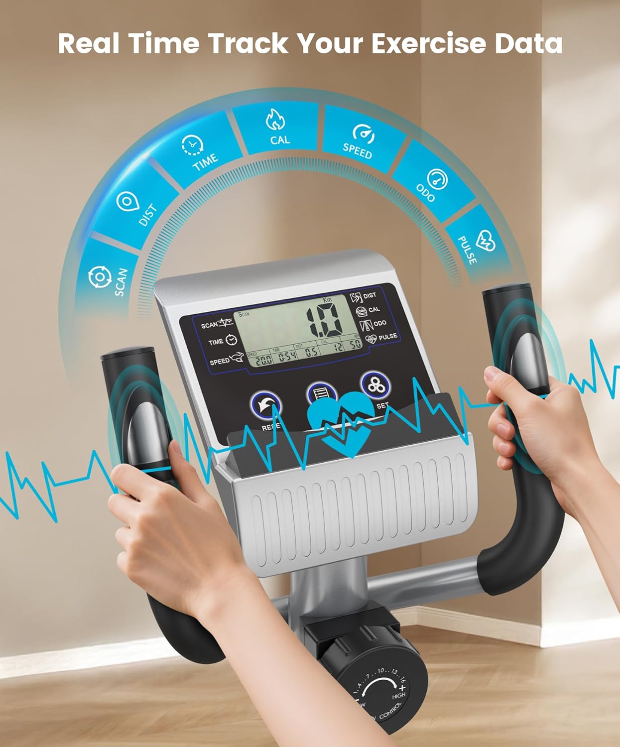 【LCD Performance Monitor】 Track your progress in real-time with clear displays for Scan, Time, Speed, Distance, Calories, Pulse, and Odometer (ODO). Use the data to fine-tune your workouts and achieve your fitness goals effectively