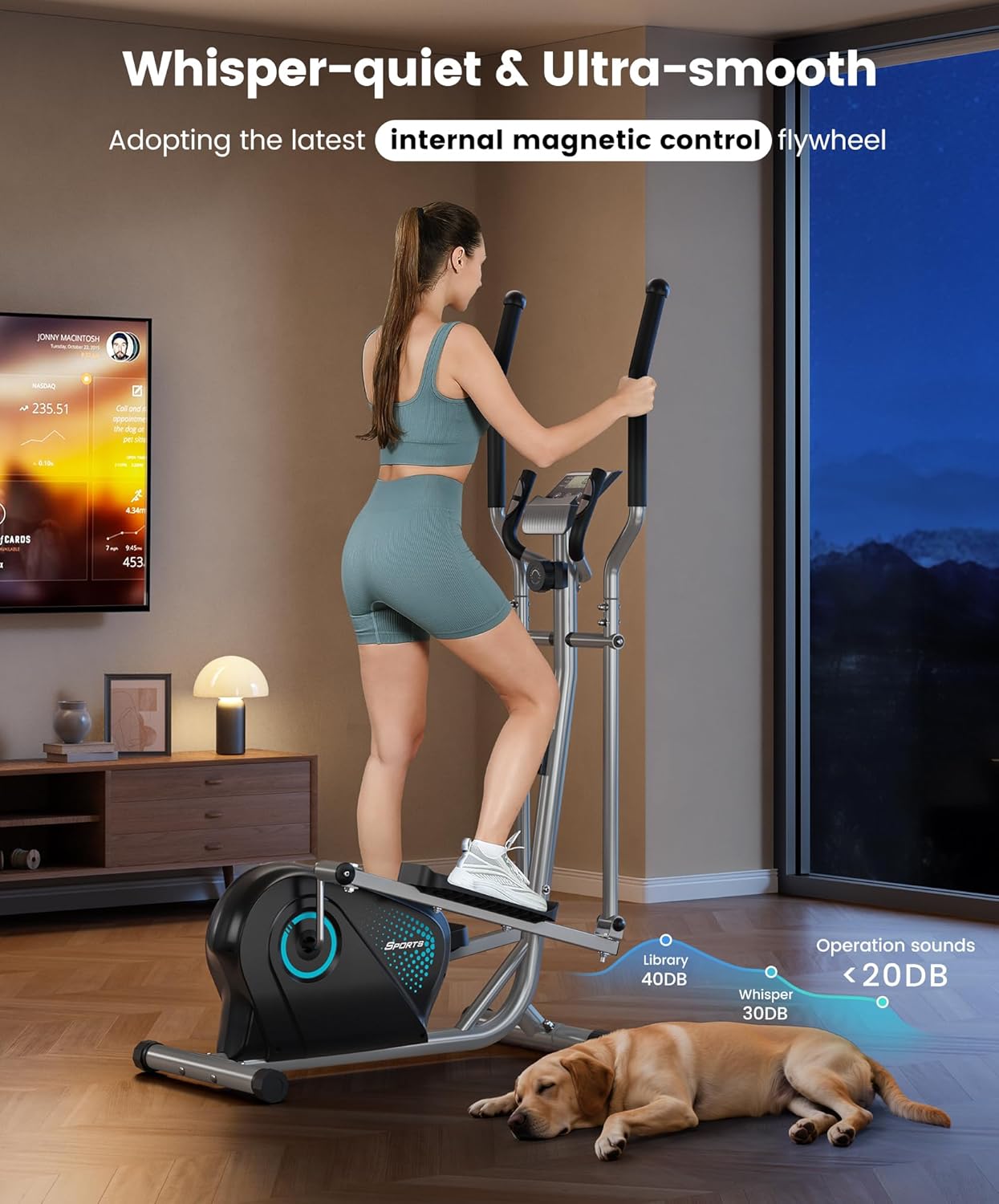 【Ultra-Quiet Integrated Internal Annular Magnetic Control System】Drips the traditional Unilateral External Magnetic Control System. Dripex Elliptical exercise machine features an innovative Integrated Internal Annular Magnetic Control System, delivering exceptional quietness, incredibly smooth motion, and unprecedented resistance uniformity. Enjoy near-silent operation (<20 dB), ensuring fluid and peaceful workouts without disturbing family or neighbors