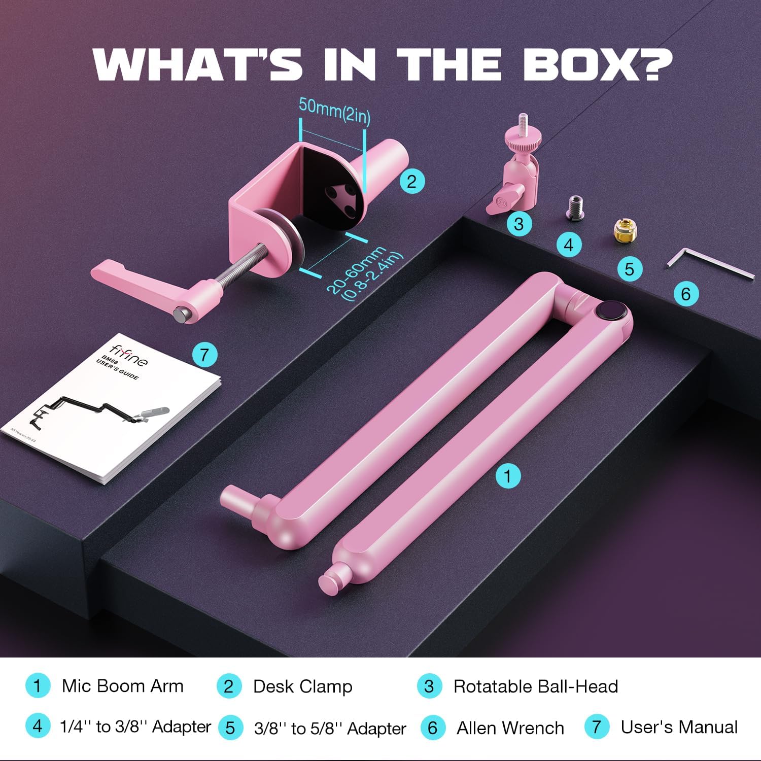 Be the first to review “FIFINE Low Profile Boom Arm Mic Stand, Microphone Stand with Cable Management Channel, Desk Clamp, Screw Adapter for Streaming Podcast Recording, Adjustable Metal Mic Boom Arm Pink-BM88P”