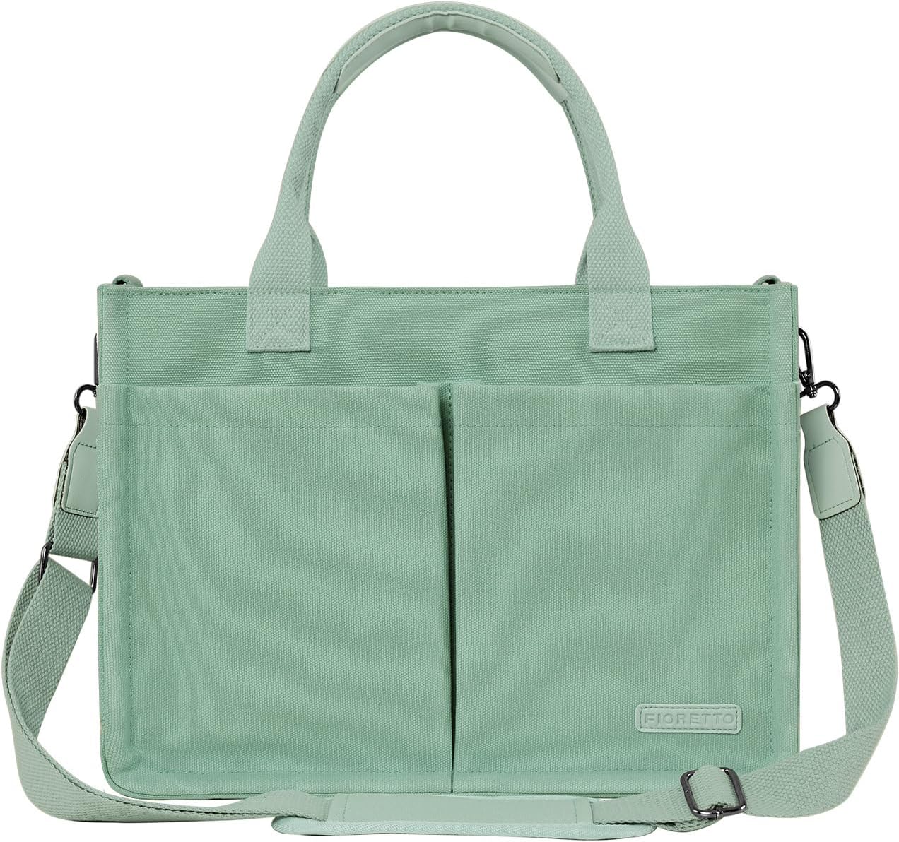 FIORETTO Womens Canvas Tote Bag Purse with Individual Compartment, Zipper Top, Reinforced Bottom & Luggage Sleeve