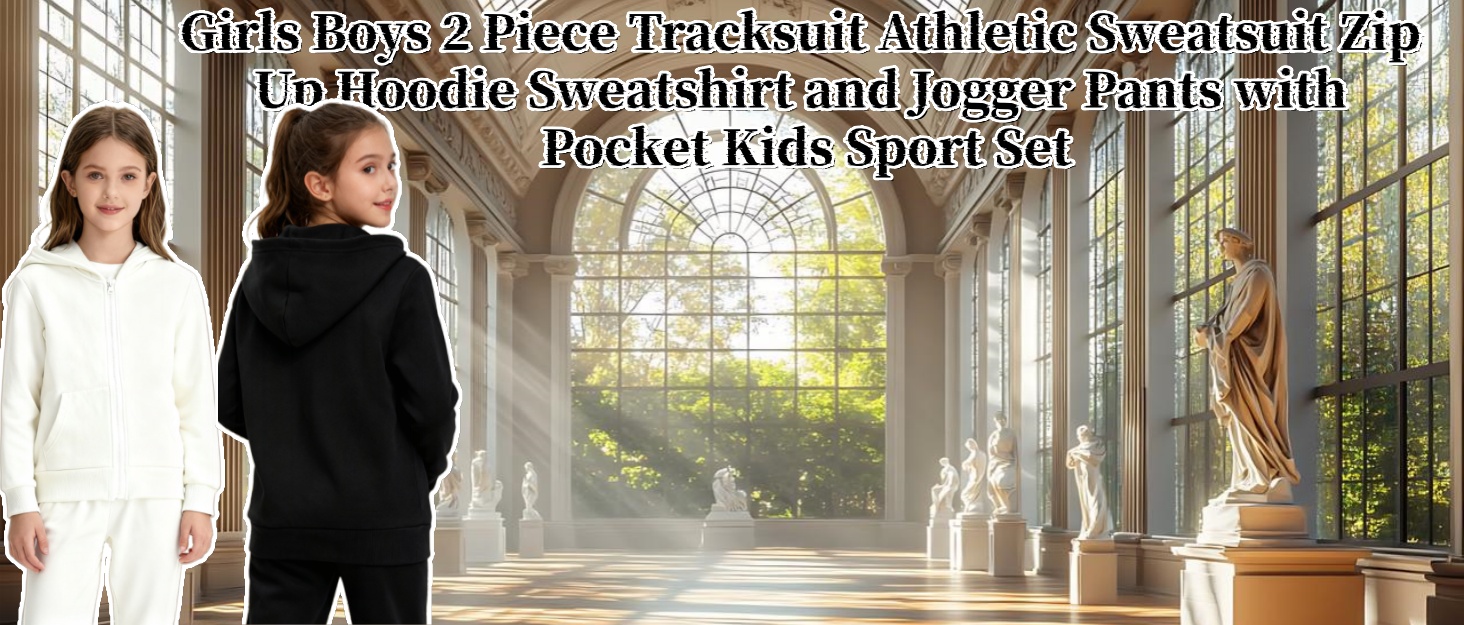 Girls Boys 2 Piece Tracksuit Athletic Sweatsuit Zip Up Hoodie Sweatshirt and Jogger Pants with Pocket Kids Sport Set