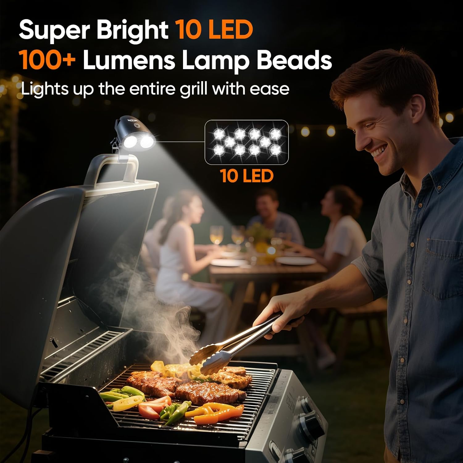 Essential Grilling Accessories: The RVZHI grill light features 10 high-lumen bulbs that emit a bright, wide beam of light. Designed for outdoor BBQ scenarios, ensuring you can see the food on your grill, be it a gas, charcoal, or electric one. With this grill light, accurately judging the food’s doneness is a breeze, allowing you to achieve perfect grills every time. Ideal for summer evening BBQ parties, winter Christmas outdoor cooking, or any nighttime grilling session