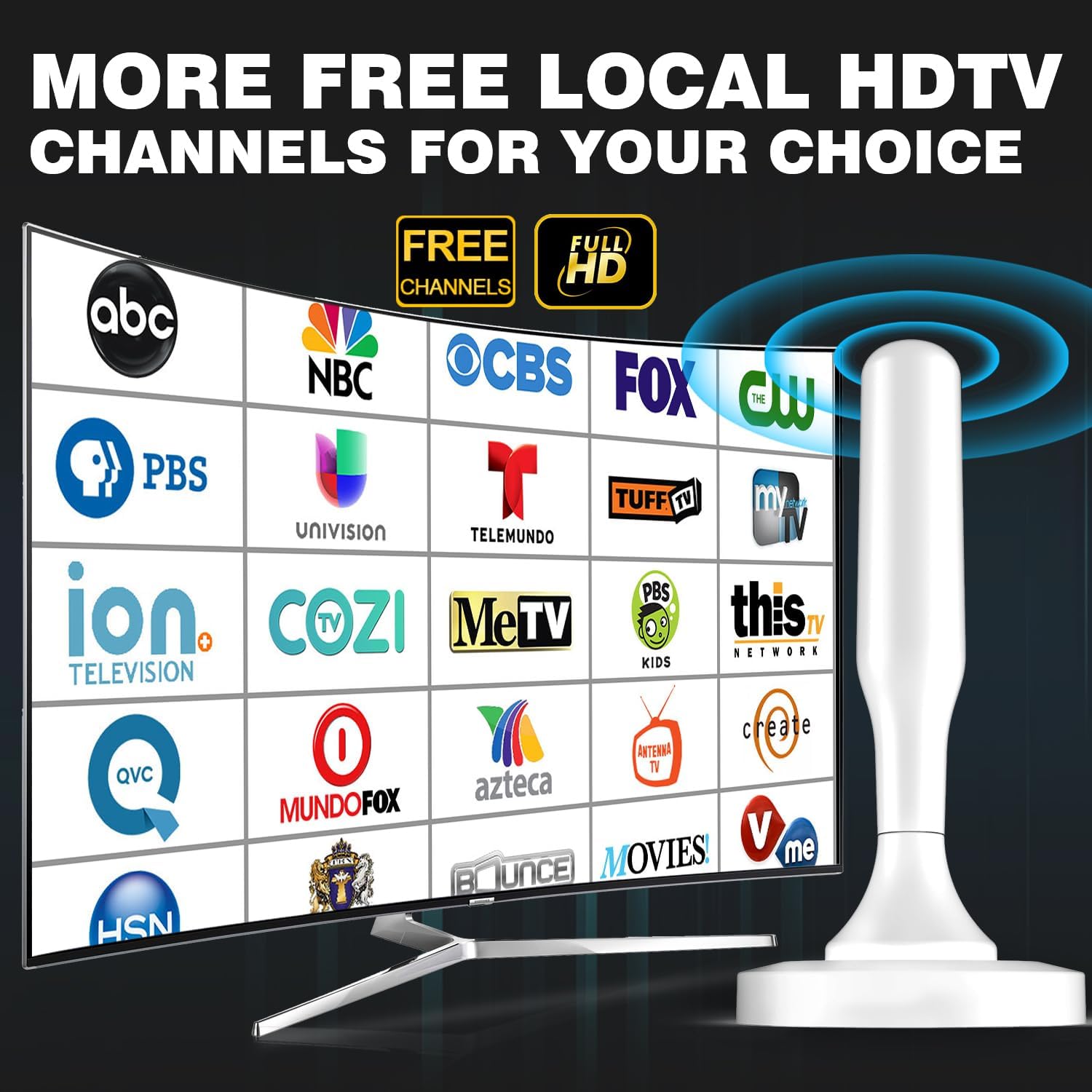 𝟑𝟔𝟎° 𝐑𝐞𝐜𝐞𝐩𝐭𝐢𝐨𝐧 & 𝐌𝐚𝐠𝐧𝐞𝐭𝐢𝐜 𝐁𝐚𝐬𝐞: The indoor HDTV antenna 360° Reception, Whether the antenna is installed on the TV stand or on the table, you can receive the crystal clear picture. Please note: Signal reception is influenced by distance from broadcast towers, obstructions like walls or mountains, and local interference. Always re-scan for channels after adjusting the antenna position to maximize reception