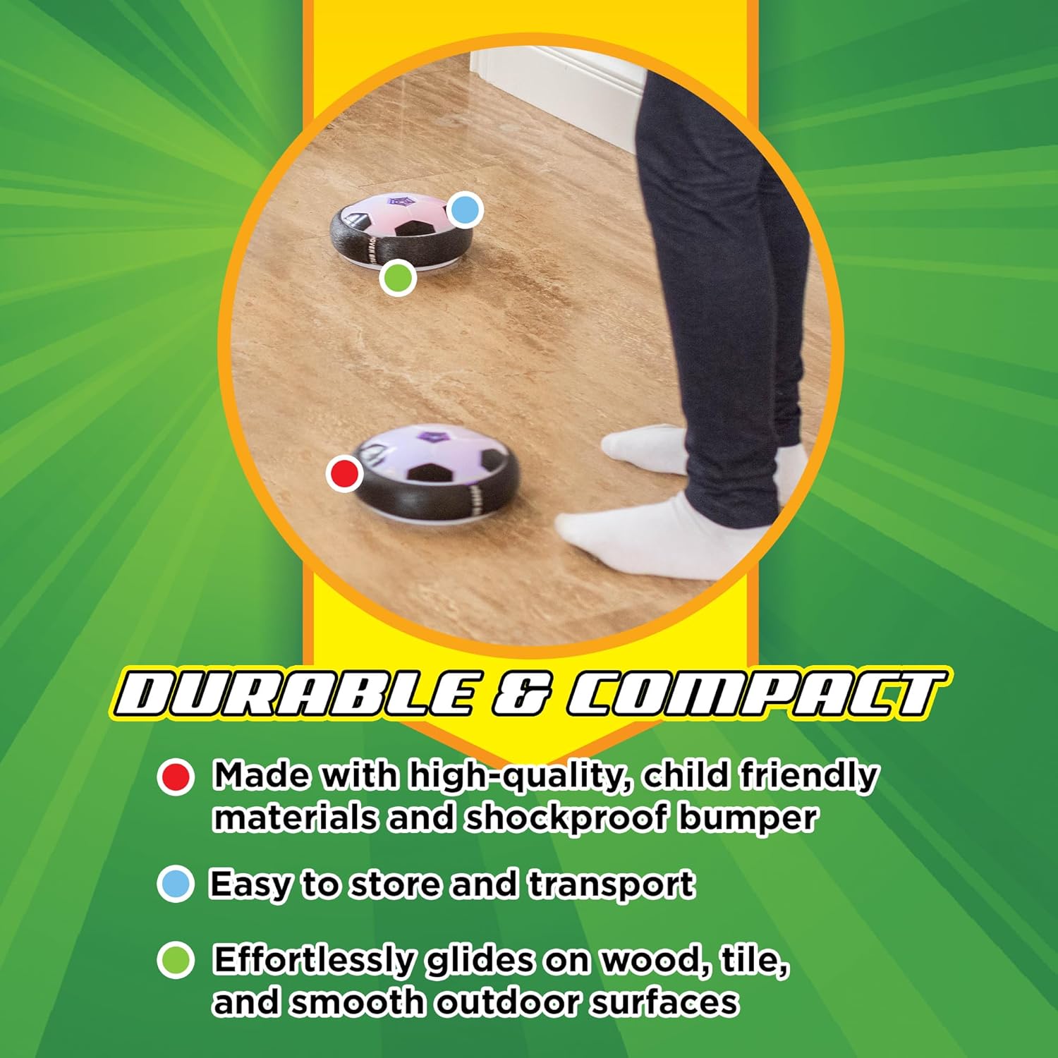 ACTIVE SOCCER FUN: Instantly transform your indoor space into a thrilling soccer arena. Kick it and watch it glide and bounce around the room for endless entertainment. No one will be able to resist joining in on the action!