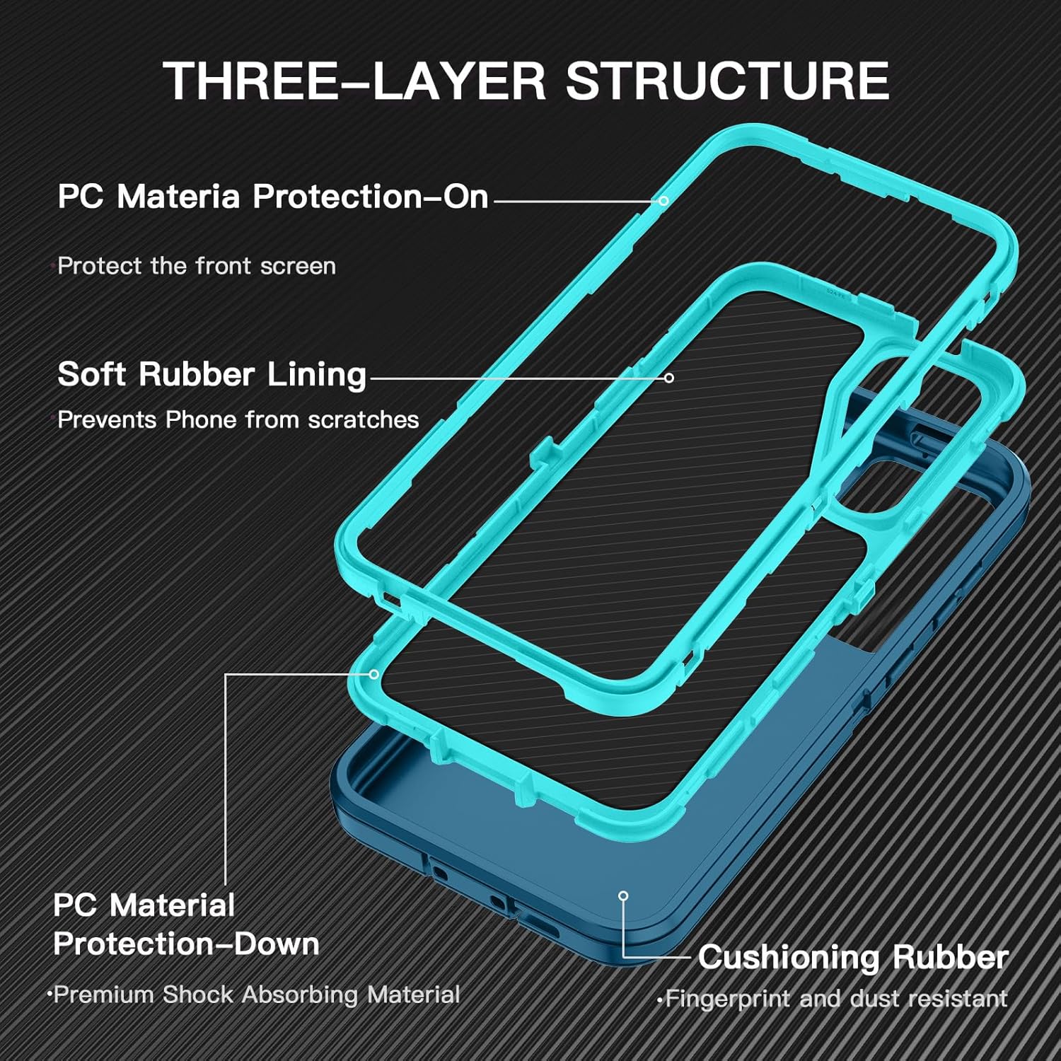 I-HONVA for Samsung Galaxy S25 FE Case Shockproof Dust/Drop Proof 3-Layer Full Body Protection [Without Screen Protector] Rugged Heavy Duty Cover Case for Galaxy S25 FE 6.7″,Turquoise