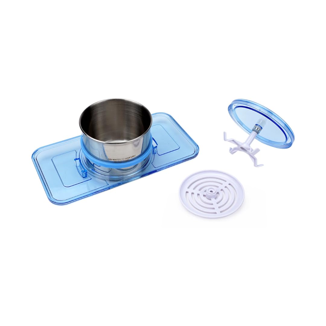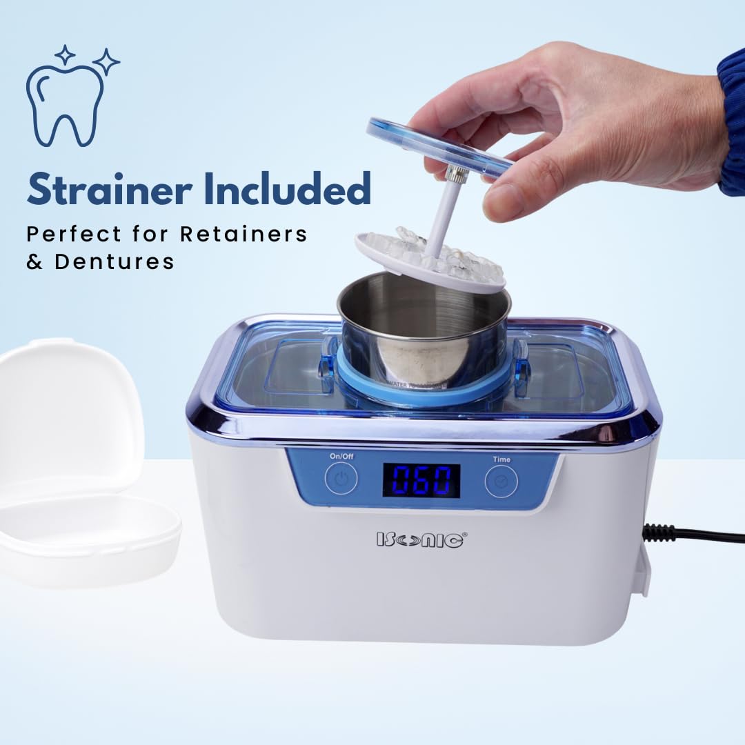 iSonic® DS310-WS+CSGJ01 Miniaturized Commercial Ultrasonic Cleaner with Integrated Stainless Steel Beaker Holder Set, White and Sapphire Blue, with a Bottle of Cleaning Solution