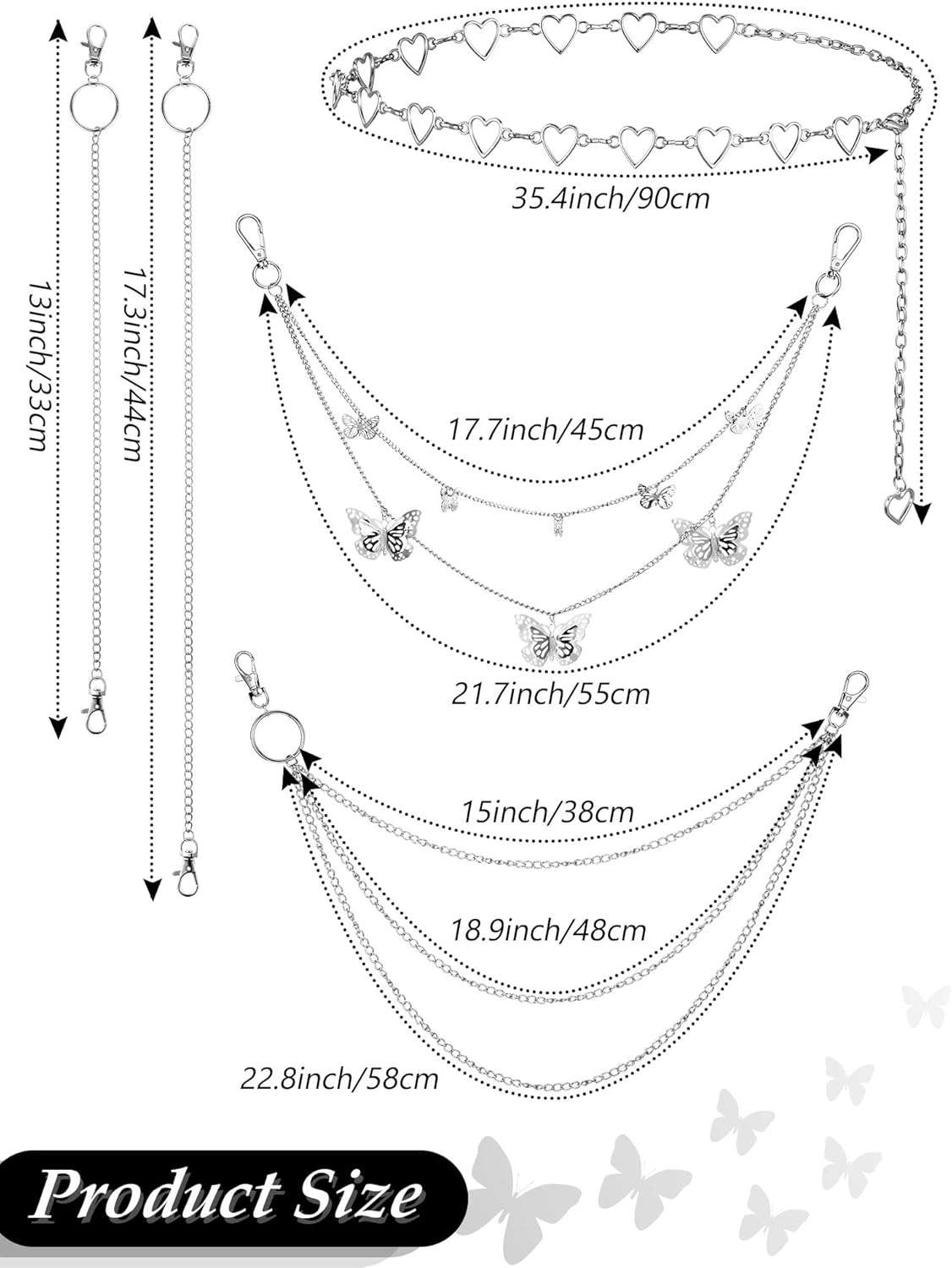 Jadive 5 Pieces Chain Belt Jeans Pants Pocket Waist Multi-Layer Hip Hop Metal Wallet Chain for Men Women